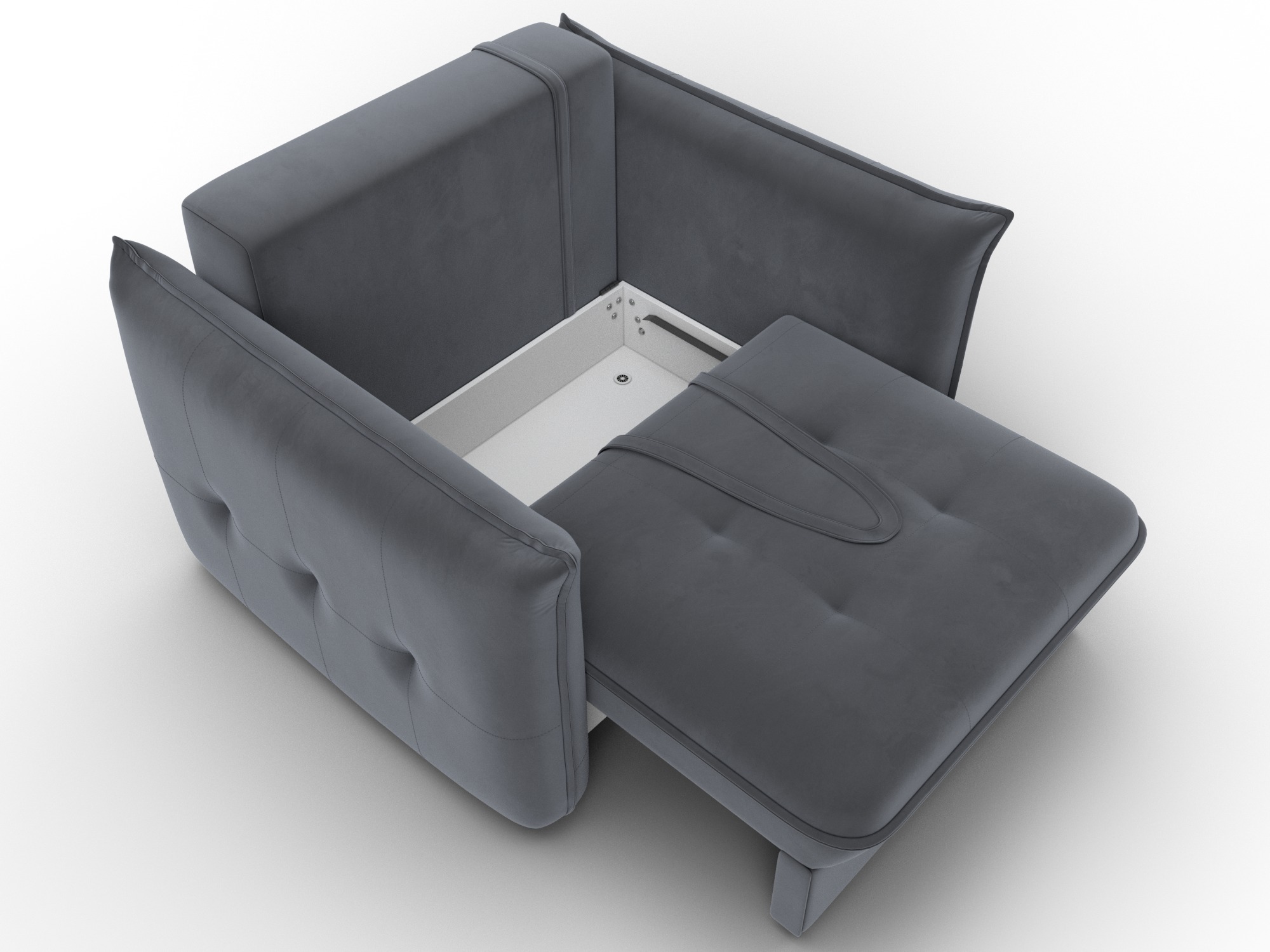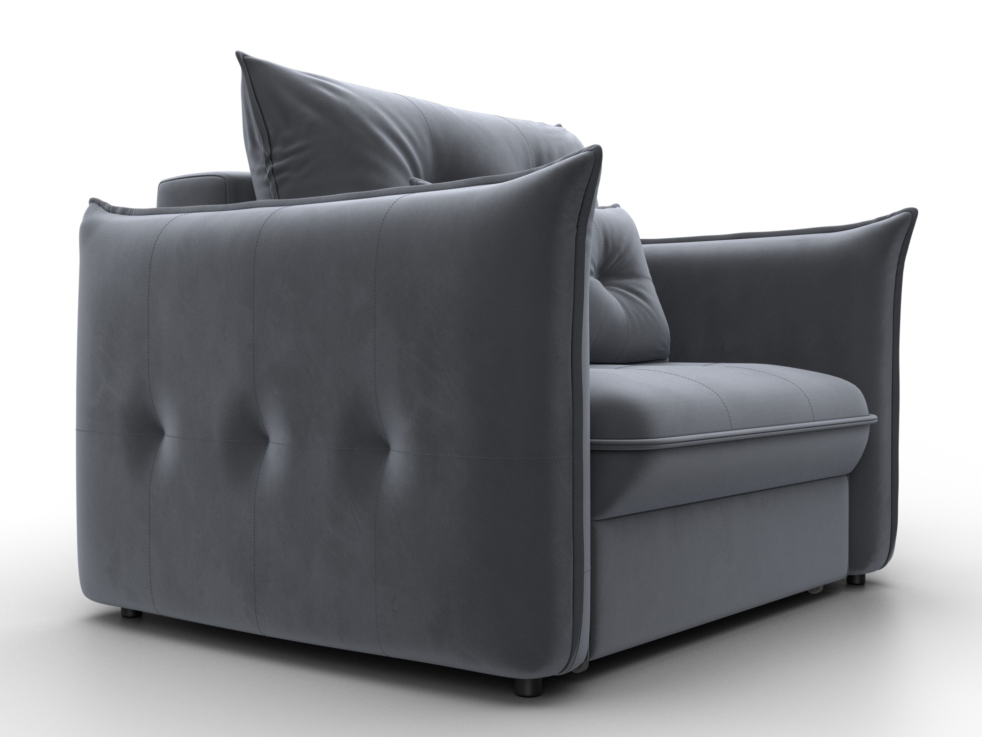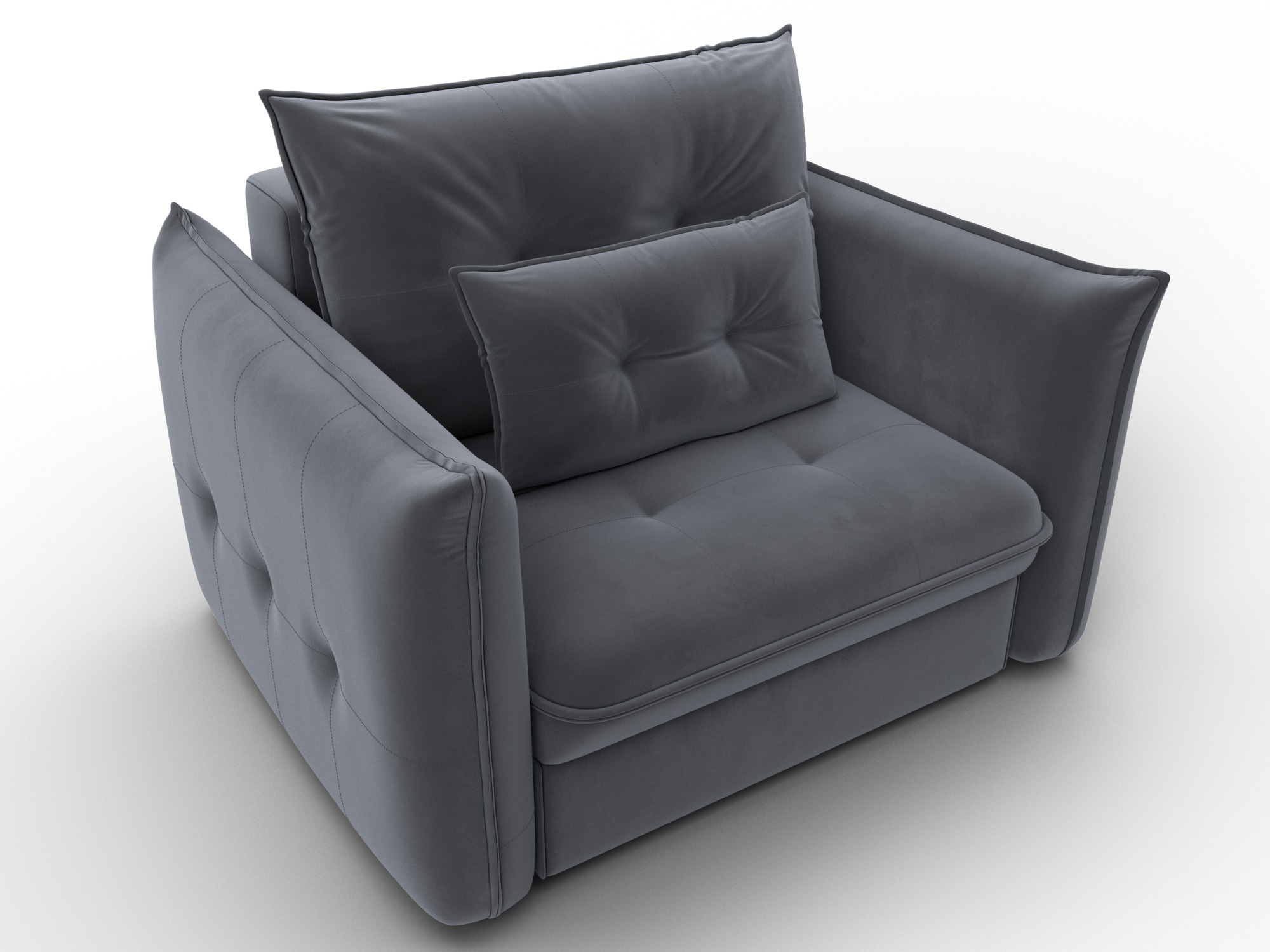 В сочетании с верхним слоем из пенополиуретана и блока независимых пружин наполнение кресла получается достаточно мягким, чтобы сделать посадку комфортной. Конструкция легко выдержит значительные нагрузки, сохраняя форму. Эксплуатация бесшумная. Верхняя мебельная ткань имеет эффектный внешний вид и отличается простотой в уходе. - Компактность