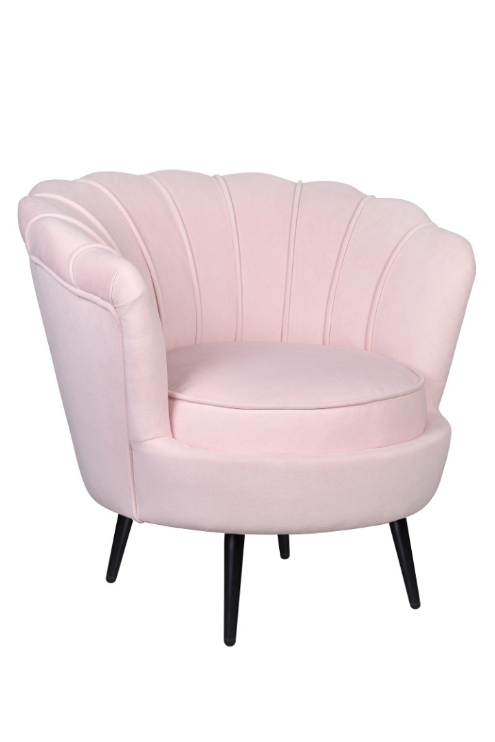 Низкое кресло ракушка Pearl розовый V2 на черных ножках