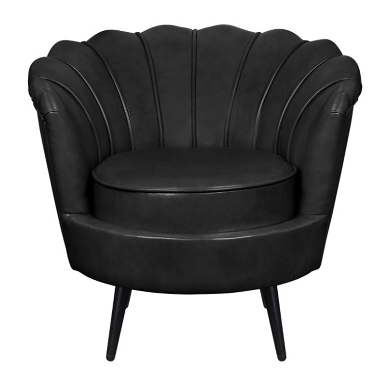 Низкое кресло ракушка Pearl Black V2 на черных ножках