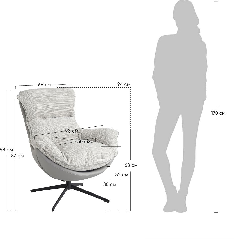 Эксклюзивная комбинация материалов обивки из приятного на ощупь шенилла на лицевой части и экокожи на задней част придают оригинальность креслу и выделяют его среди других.