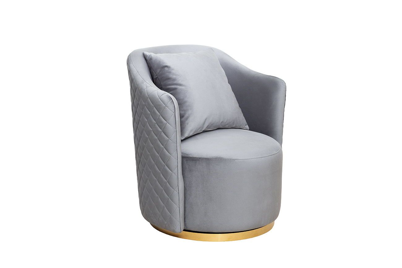Запросить индивидуальное предложениеЭксклюзивное вращающееся кресло Верона(Verona) станет украшением интерьера гостиной, кабинета, холла, столовой, лаунж-зоны. Максимально комфортное, стильное и универсальное в плане интерьерной компоновки. Стильное кресло с механизмом вращения вокруг своей оси обеспечит повышенный комфорт и хорошую поддержку спине. Изюминка модели – декоративное основание из позолоченного металла, что придает креслу изящества и визуальной легкости. Подушка и обтекаемая форма спинки с подлокотниками делают его особенно уютным. Размер сиденья Г58*Ш60*В40см. Диаметр металлической части основания - 58см, высота - 3,5см. В стандартном исполнении: обивка - ткань велюр из коллекции тканей Garda Decor Колтон(Colton)1004, основание - полированная нержавеющая сталь с глянцевым золотым гальваническим покрытием.