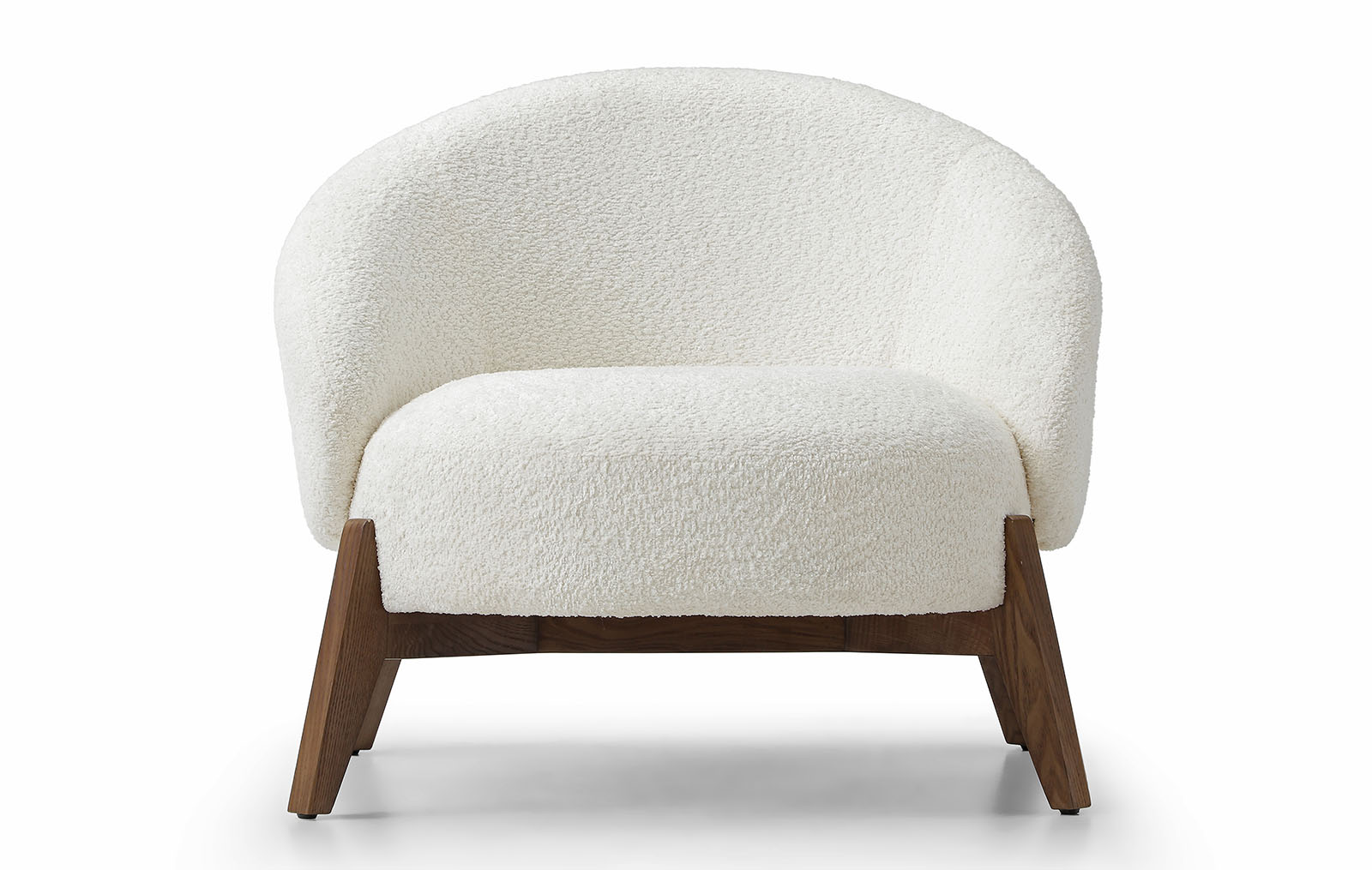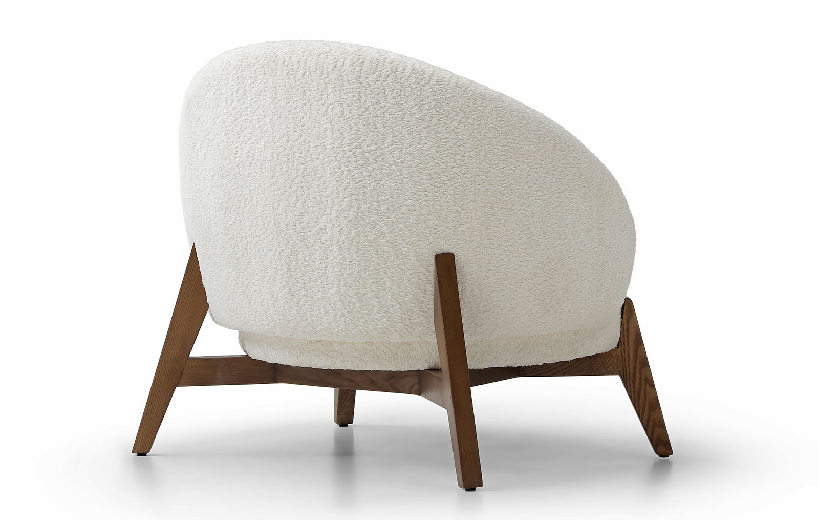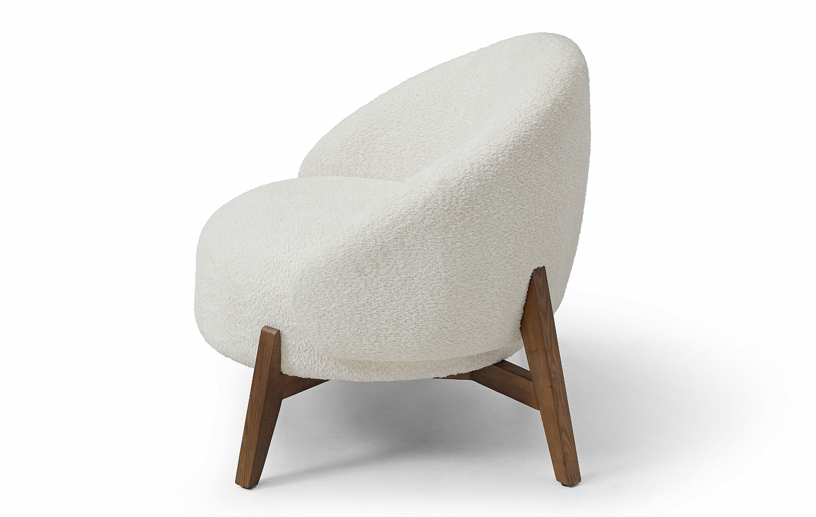 Обивка выполнена из фактурной ткани «тедди», приятной на ощупь и придающей креслу дополнительный объём и тепло. Благодаря светлому оттенку кресло освежает пространство и легко сочетается с различными цветовыми решениями интерьера.