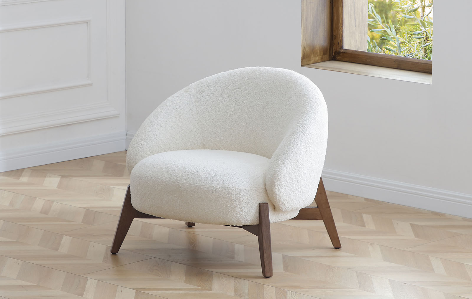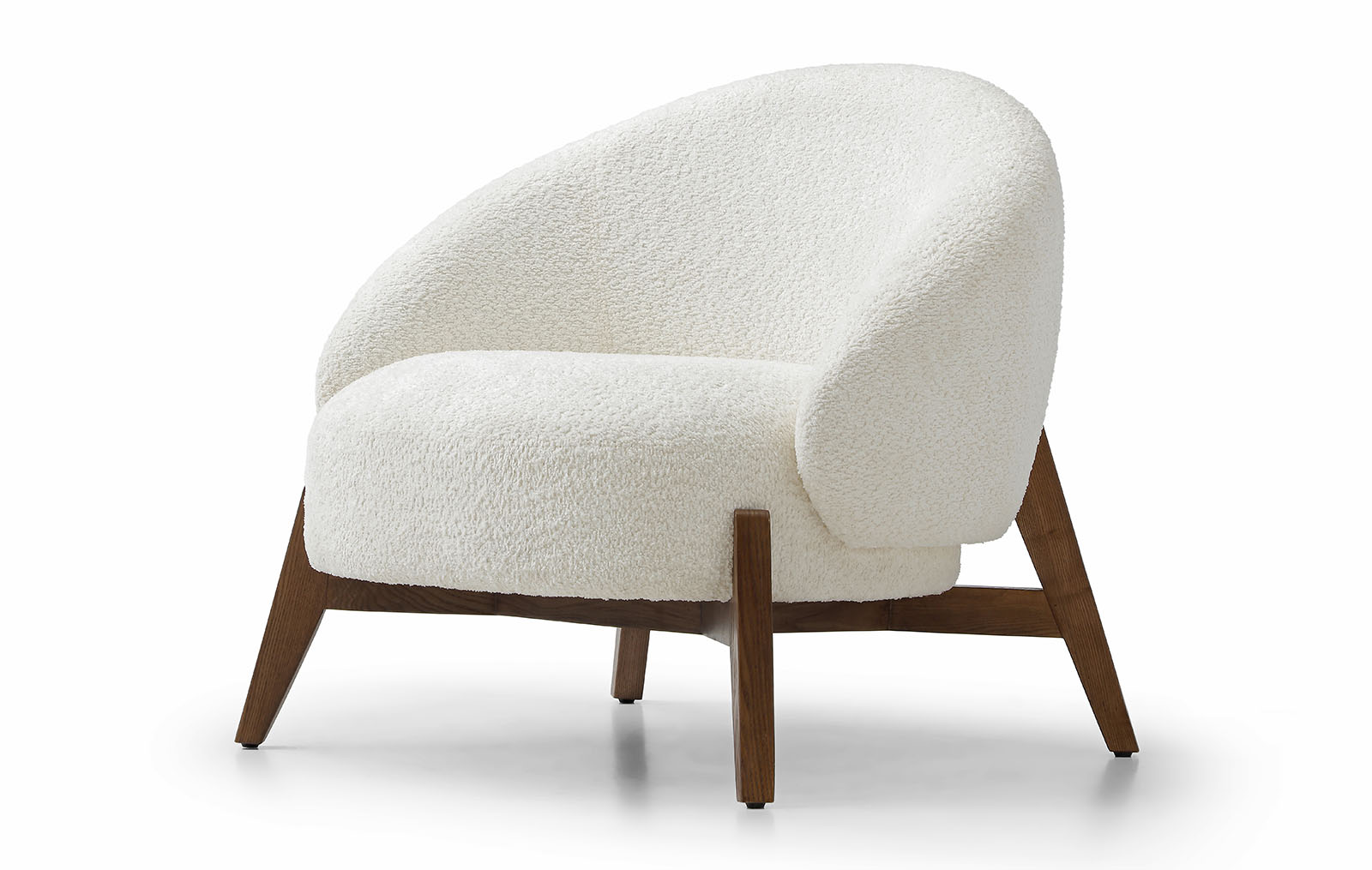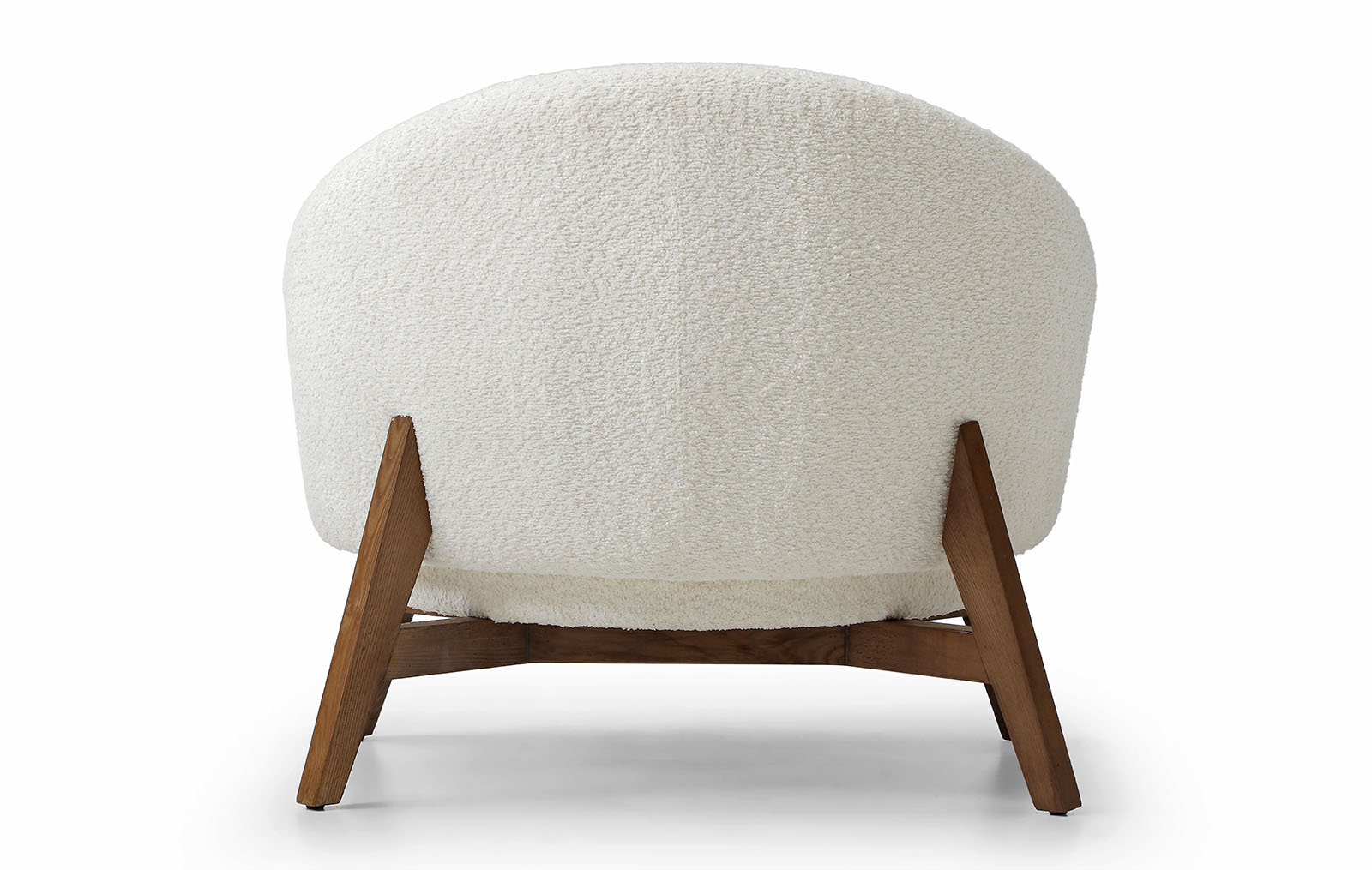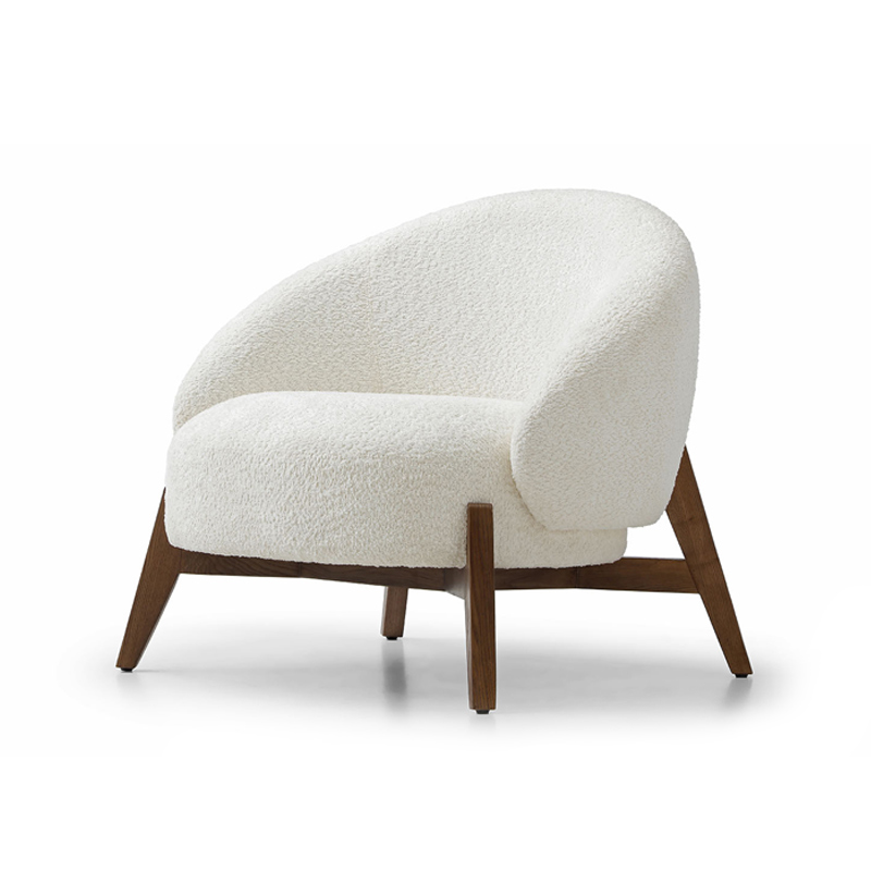 Обивка выполнена из фактурной ткани «тедди», приятной на ощупь и придающей креслу дополнительный объём и тепло. Благодаря светлому оттенку кресло освежает пространство и легко сочетается с различными цветовыми решениями интерьера.