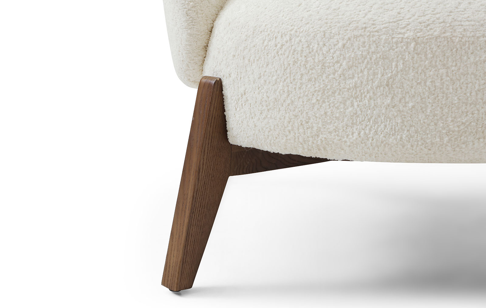 Крепкие ножки из натурального ясеня, тонированные под орех, добавляют модели выразительности и подчёркивают её винтажный характер.