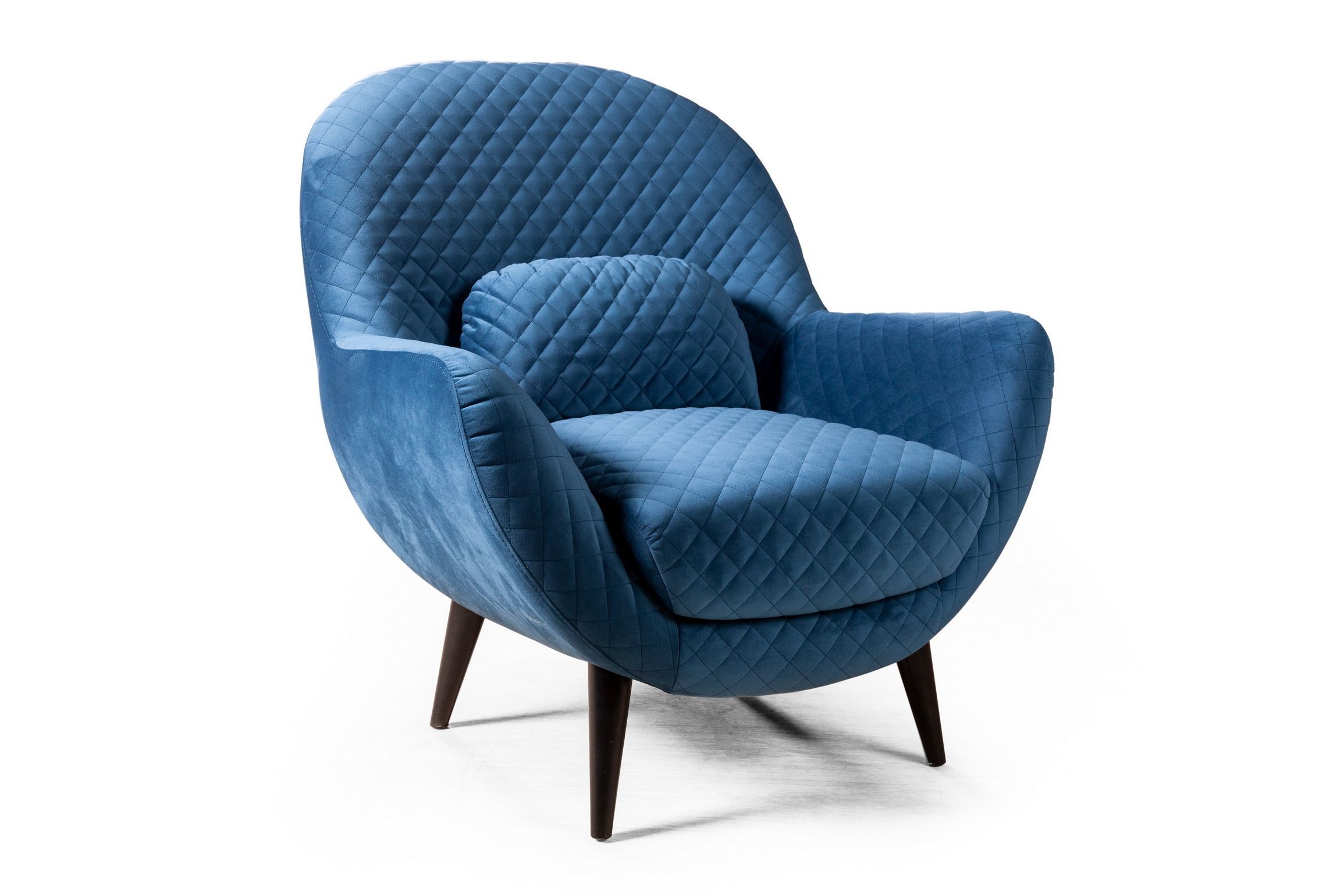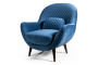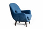 Слегка наклоненные подлокотники выглядят объемными и мягкими, оставаясь достаточно узкими и практичными, экономя пространство помещения.