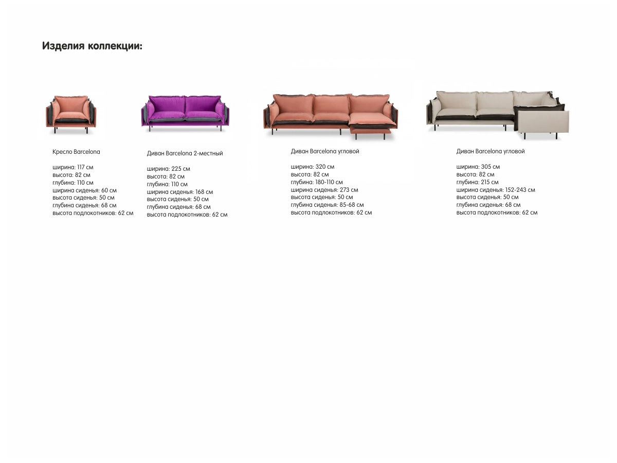 Коллекция Barselona - кресло и диван – способна вас удивить, благодаря двухсторонним подушкам. Все они легко снимаются и переворачиваются. Экспериментируйте!
