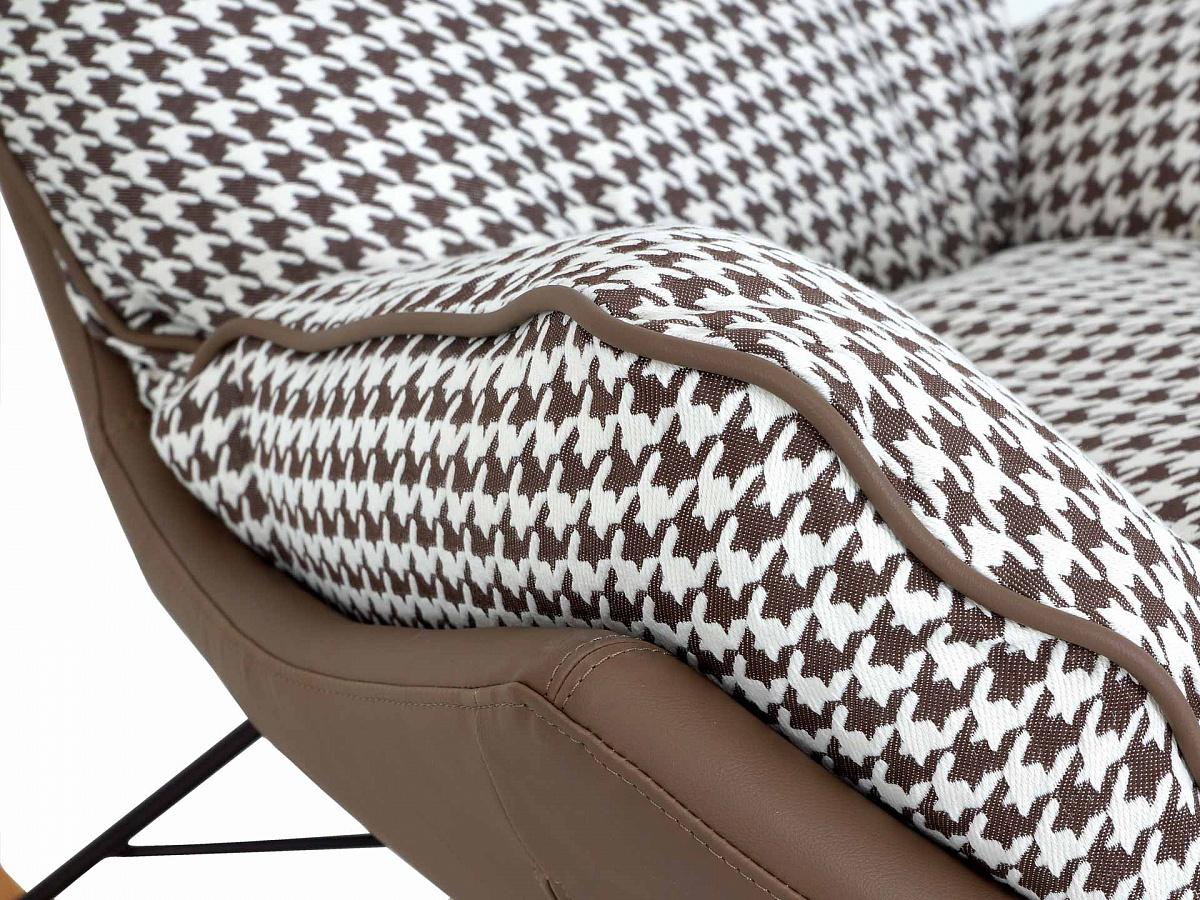 Запросить индивидуальное предложениеОбивка - жаккард (плетение гусиная лапка) / экокожа (цвет коричневый). Материал ножек - натуральное дерево бук/черный металл.