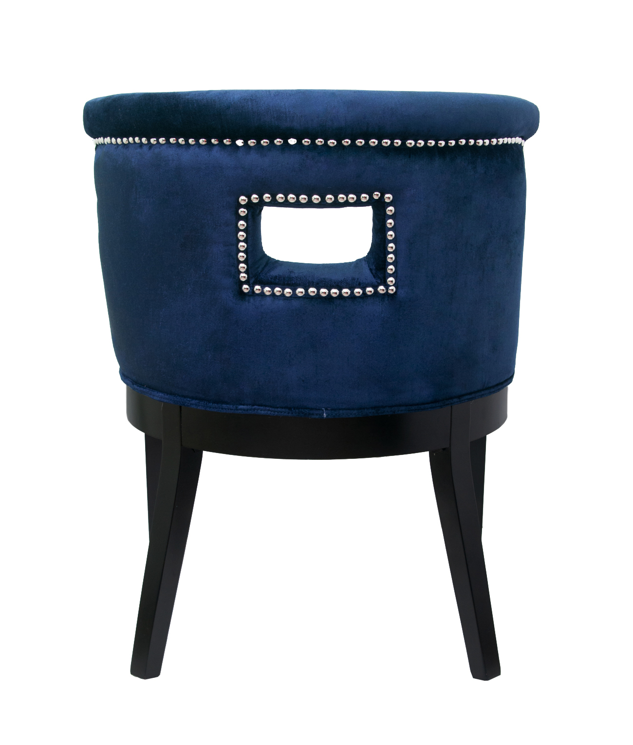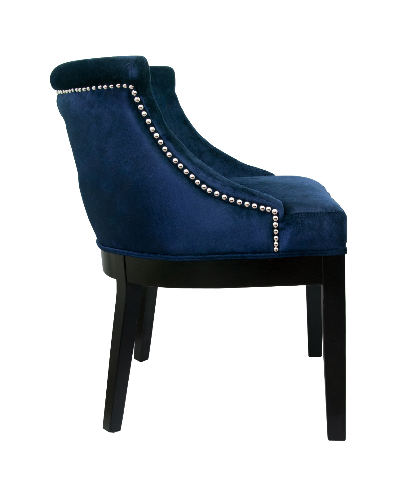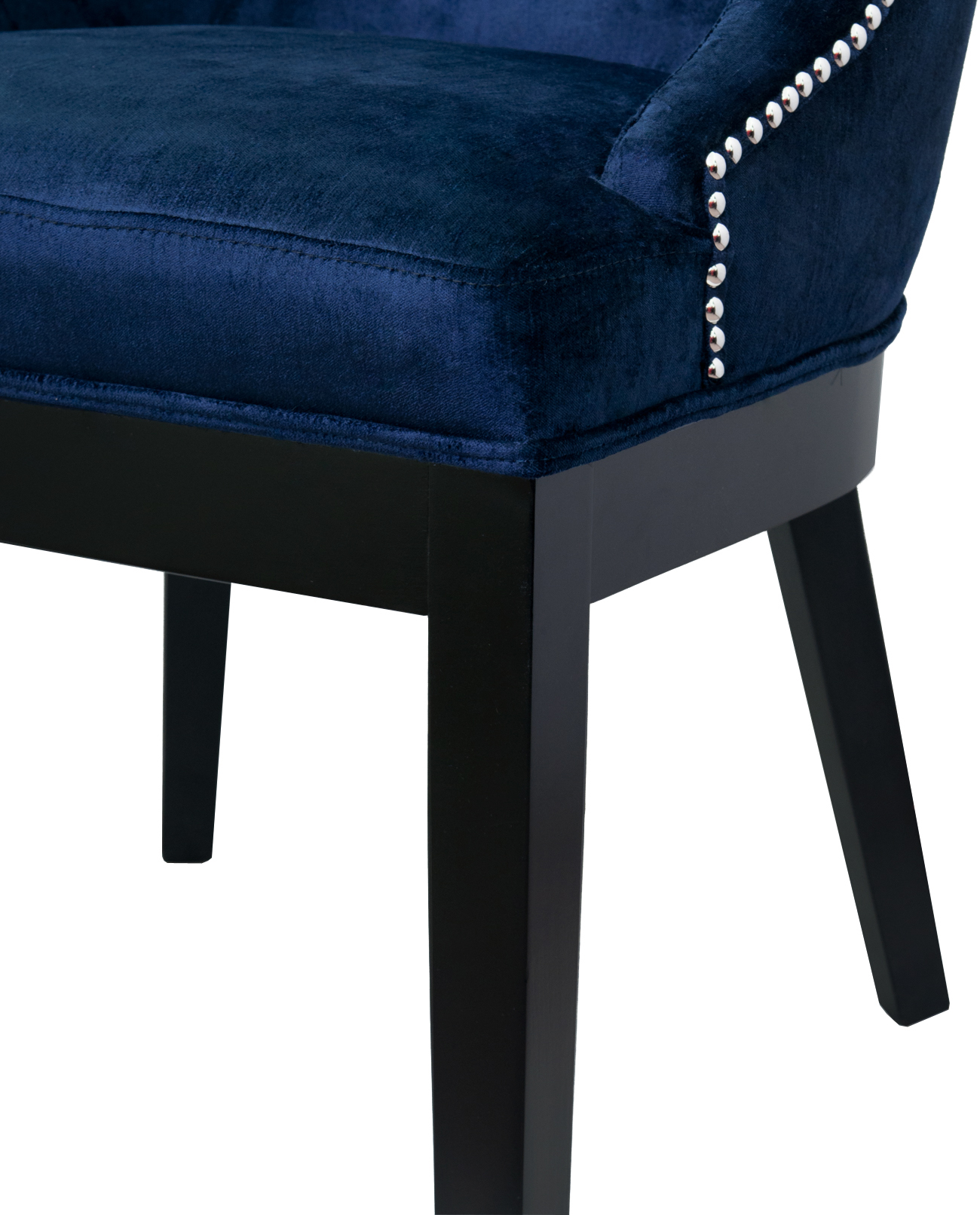Запросить индивидуальное предложениеКресло Chamberlain на высоких ножках черного цвета эффектно смотрится в современных интерьерах и помещениях, оформленных в стиле прованс. Закругленная спинка и мягкое сиденье в виде объемной подушки обеспечивают телу человека удобное положение при отдыхе. Маленькие серебристые гвоздики, вбитые по краям, служат дополнительным элементом декора.