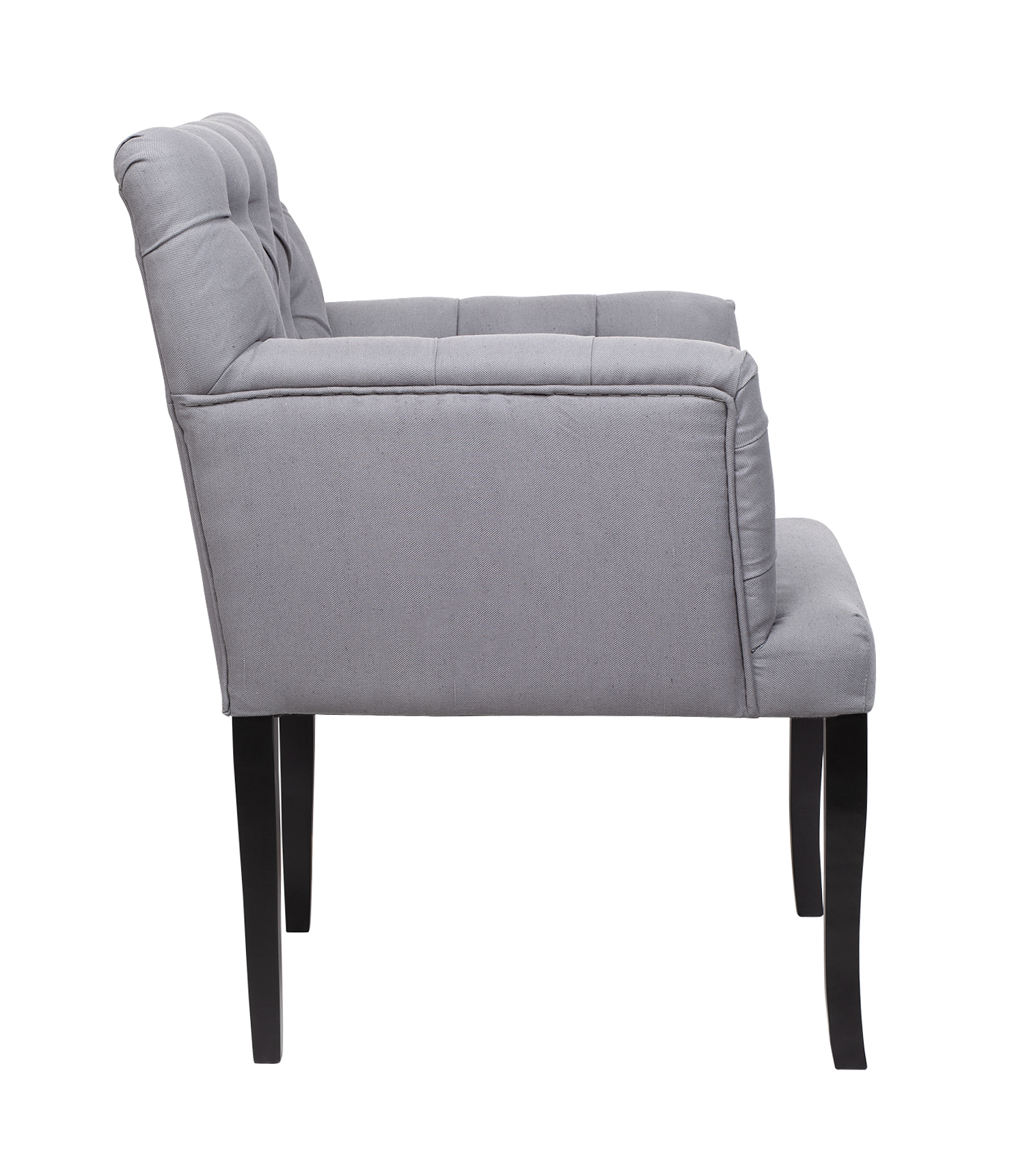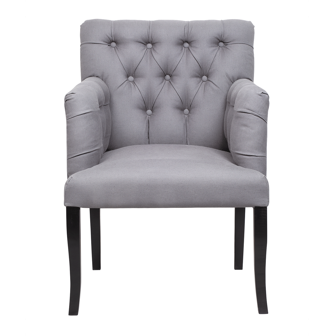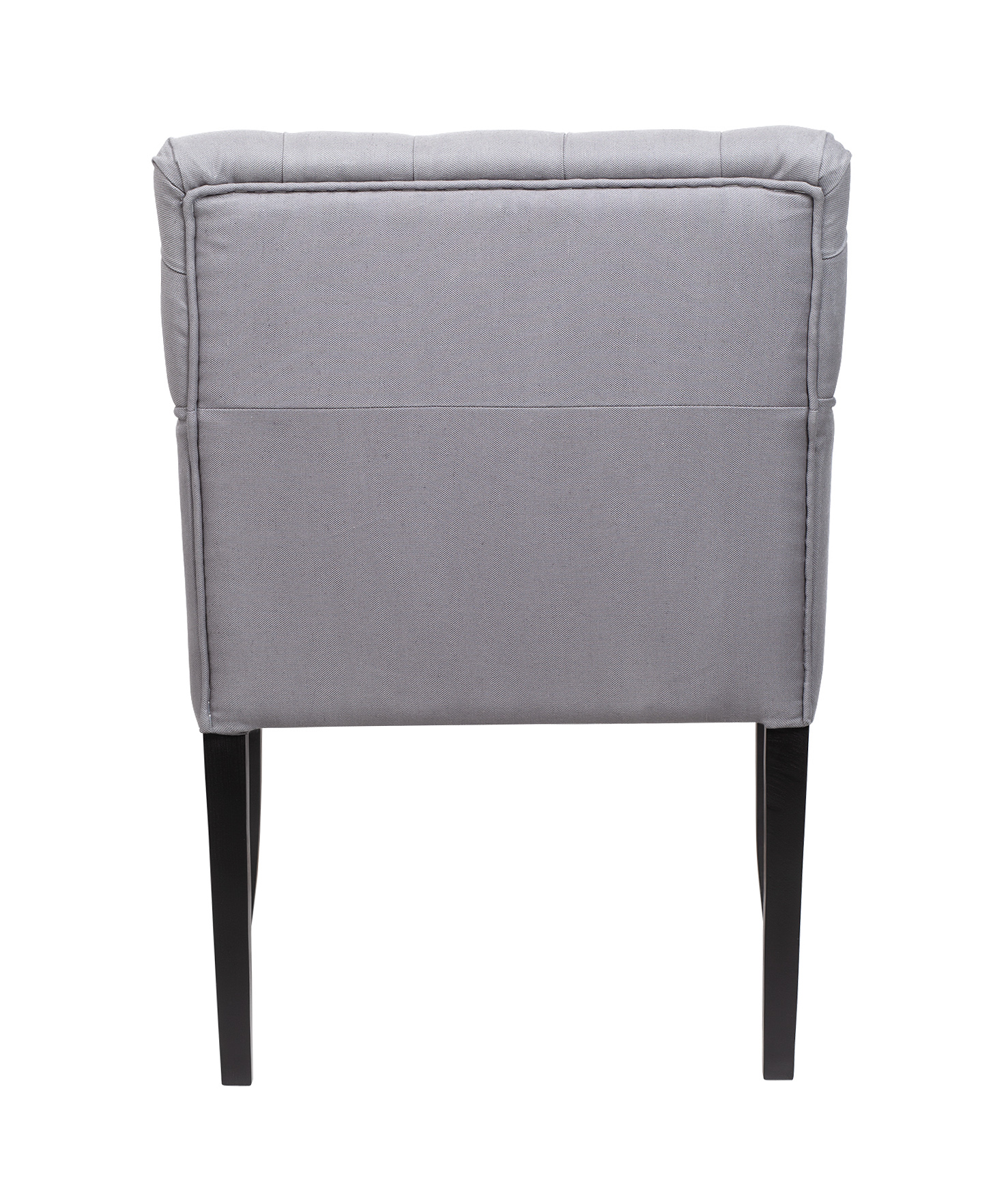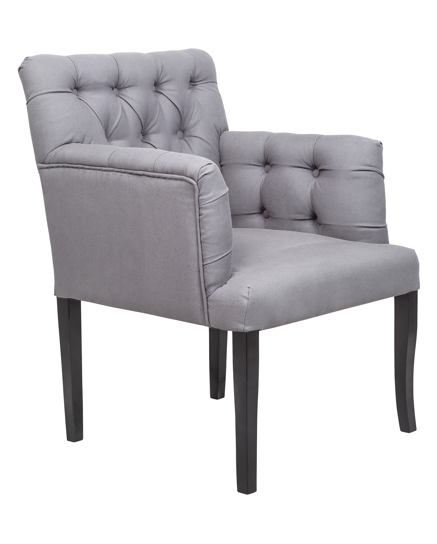 Запросить индивидуальное предложениеКресло Zander Grey– элегантная мебель с квадратными спинкой и основанием, мягкими подлокотниками и длинными темными ножками, создающими эффектный контраст с серой обивкой. Модель представляет собой среднее между креслом и стулом, сочетает в себе лаконичность и удобство, эстетично смотрится в любом интерьере.