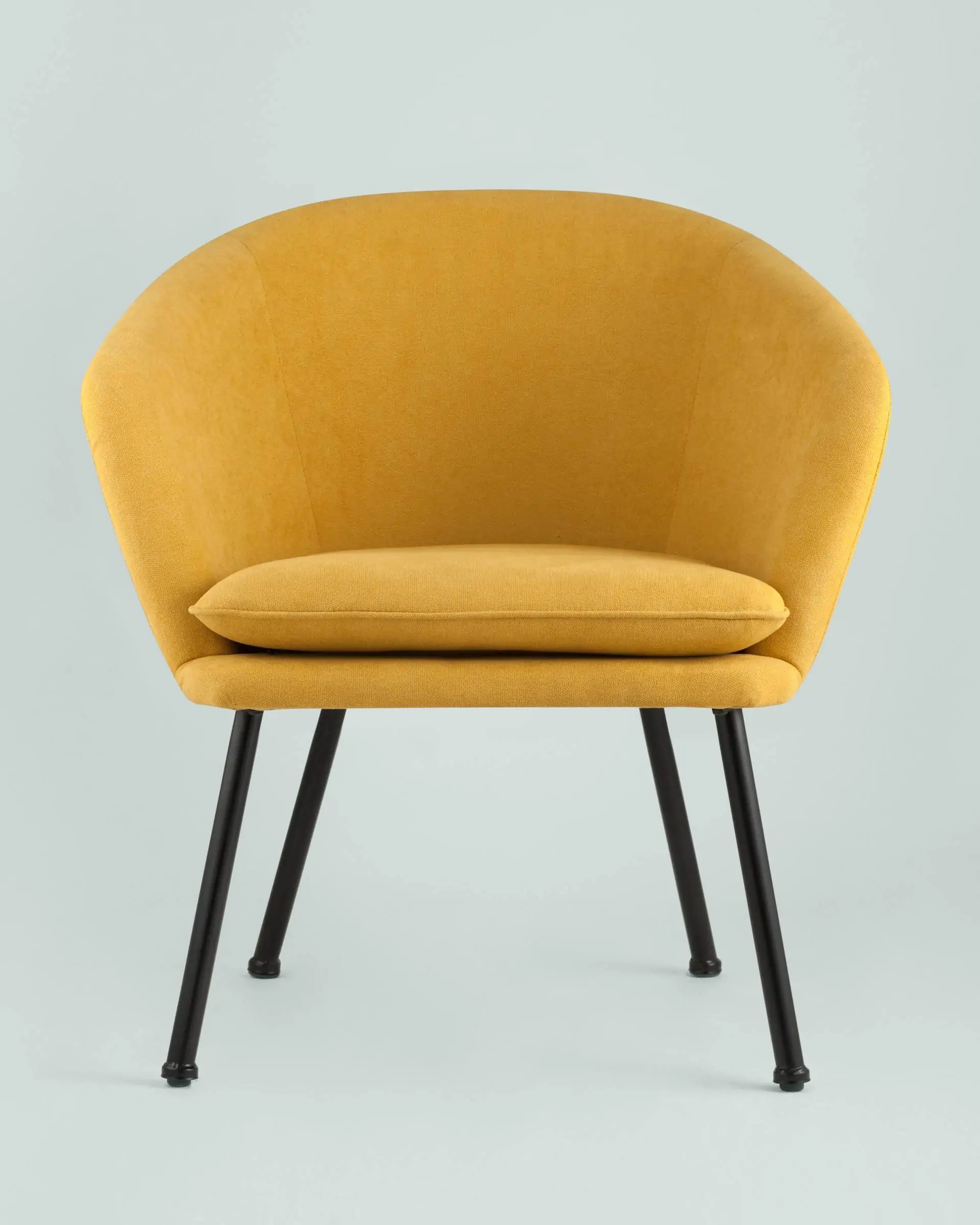 Запросить индивидуальное предложениеШирокая спинка плавно переходит в удобные подлокотники высотой 69,5 см от пола. Для дополнительного комфорта в кресле есть мягкое плотное сиденье. В качестве обивки используется ткань шенилл, плотный износостойкий материал с бархатистой структурой, приятный на ощупь. Металлический каркас добавляет устойчивости и выдерживает нагрузку до 120 кг. Ножки металлические черные.