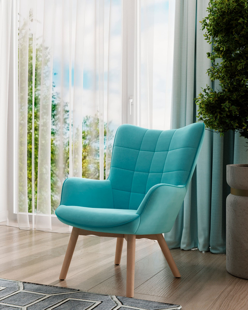 Кресло «Манго» в мятной обивке сочетает современный дизайн и комфорт. Высокая спинка и плавные подлокотники обеспечивают удобную посадку. Обивка из велюра мятного оттенка придаёт креслу свежий и стильный вид. Декоративная стёжка на спинке добавляет изысканности. Ножки из массива дерева светло-коричневого цвета подчёркивают элегантность и обеспечивают устойчивость конструкции. Компактные размеры позволяют использовать кресло в различных интерьерах, добавляя уют и эстетическую привлекательность.