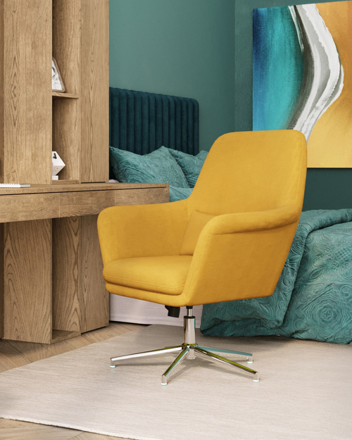 Запросить индивидуальное предложениеЯркое кресло с широким сиденьем и удобной эргономичной спинкой. Высокопрочная тканевая обивка. Металлический каркас. Регулировка по высоте, максимальная нагрузка 120 кг. Высота сиденья регулируется от 47,5 до 57,5 см. В зависимости от регулировки общей высоты кресла, высота подлокотников от пола составляет 66-76 см.