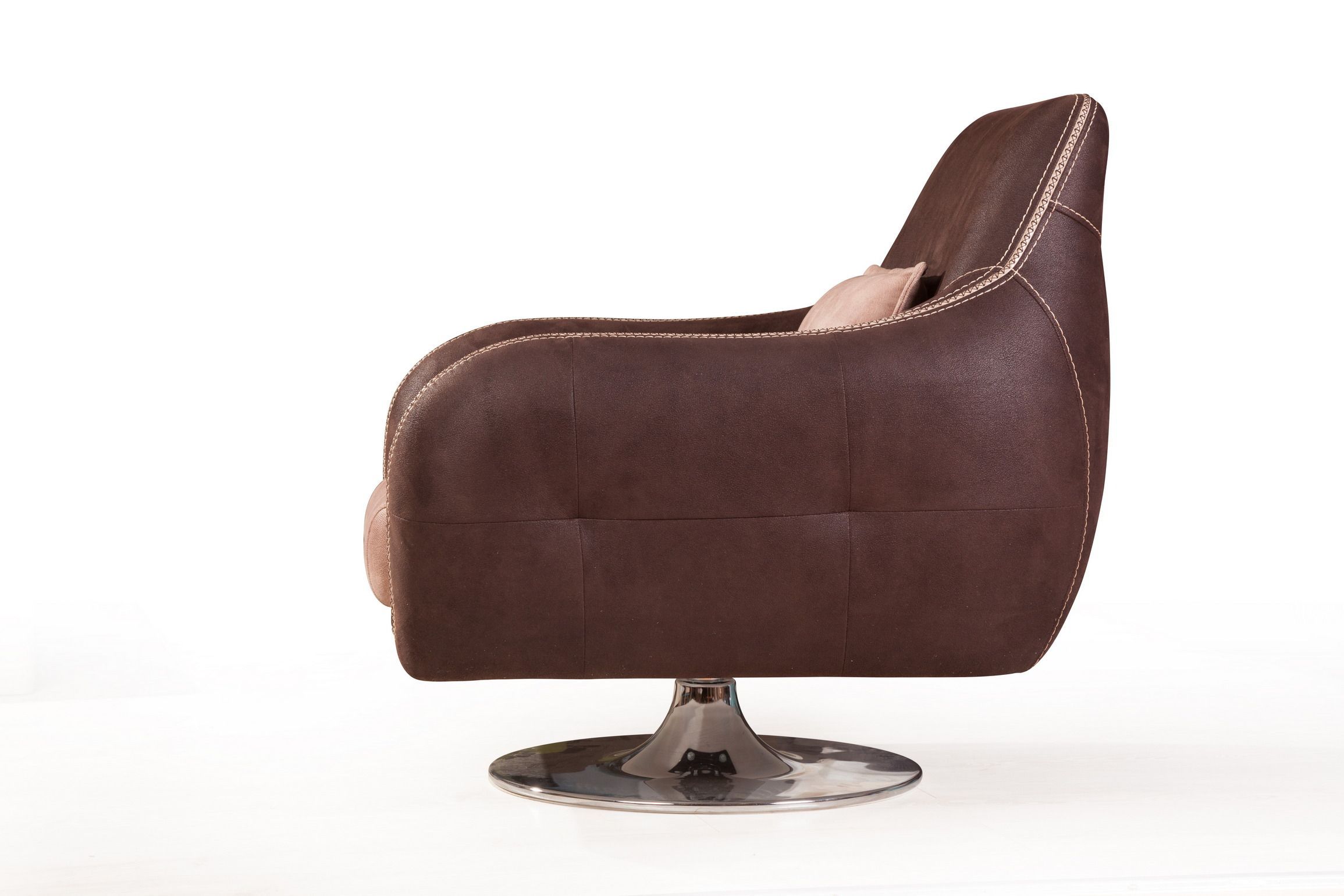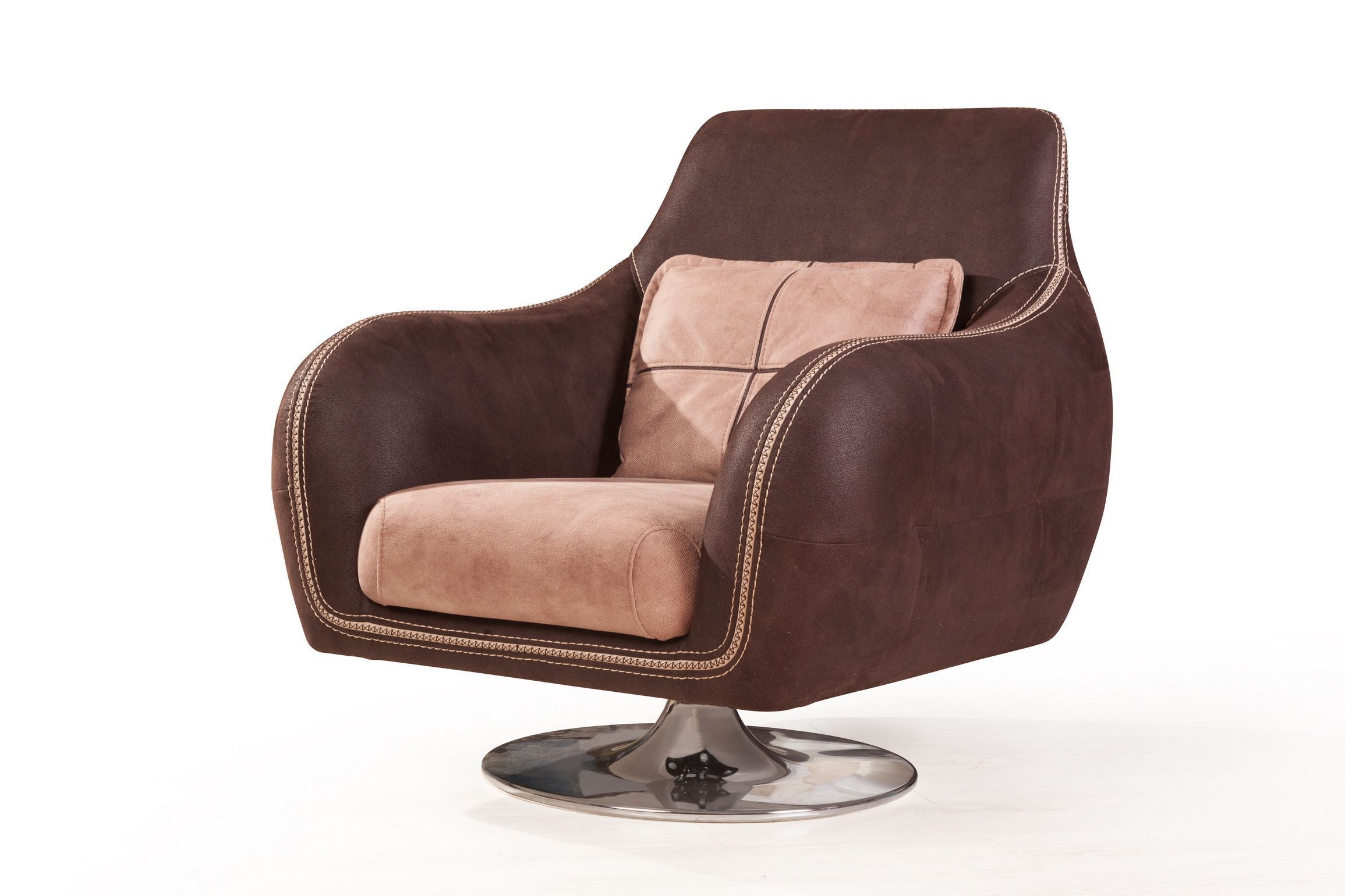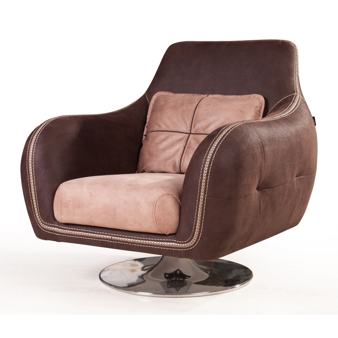 Запросить индивидуальное предложениеИнтерьерное кресло из коллекции «Неаполь», сохранившее в себе все элементы дизайна коллекции. Хромированная ножка, являющаяся опорой кресла, подчеркивает его оригинальность, а также позволяет креслу вращаться на 360 градусов. Наличие канта и декоративной контрастной отстрочки придают особую изысканность и утонченность, создавая стильный современный образ интерьера. Отличительной чертой коллекции NAPOLI (Неаполь) является использование яркой декоративной отделки, что придает модели неординарный внешний вид и завершенность образа: Декоративный кант с отстрочкой мокасиновым швом спинки и подлокотников; Контрастный кант приспинных и декоративных подушек; Контрастная отстрочка царги. Комфортное, утонченное кресло из коллекции «Неаполь» позволит как создать в помещении целый мебельный ансамбль, сочетающийся изяществом линий и оригинальностью форм, так и использовать кресло в качестве интерьерного акцента.