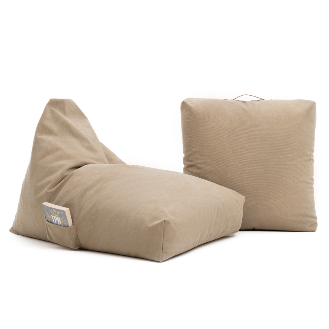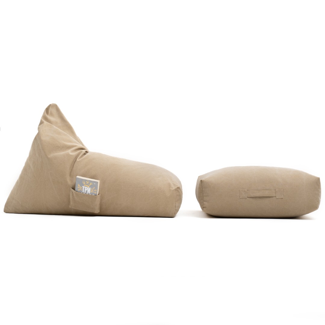 Дизайнерское кресло мешок из натурального хлопка размер XL песочный мрамор