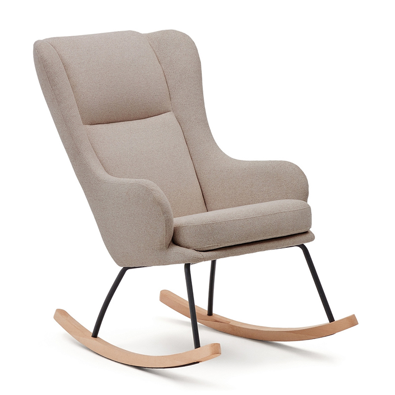 Maustin Кресло-качалка из бежевой овчины со стальной конструкцией и деревом бука