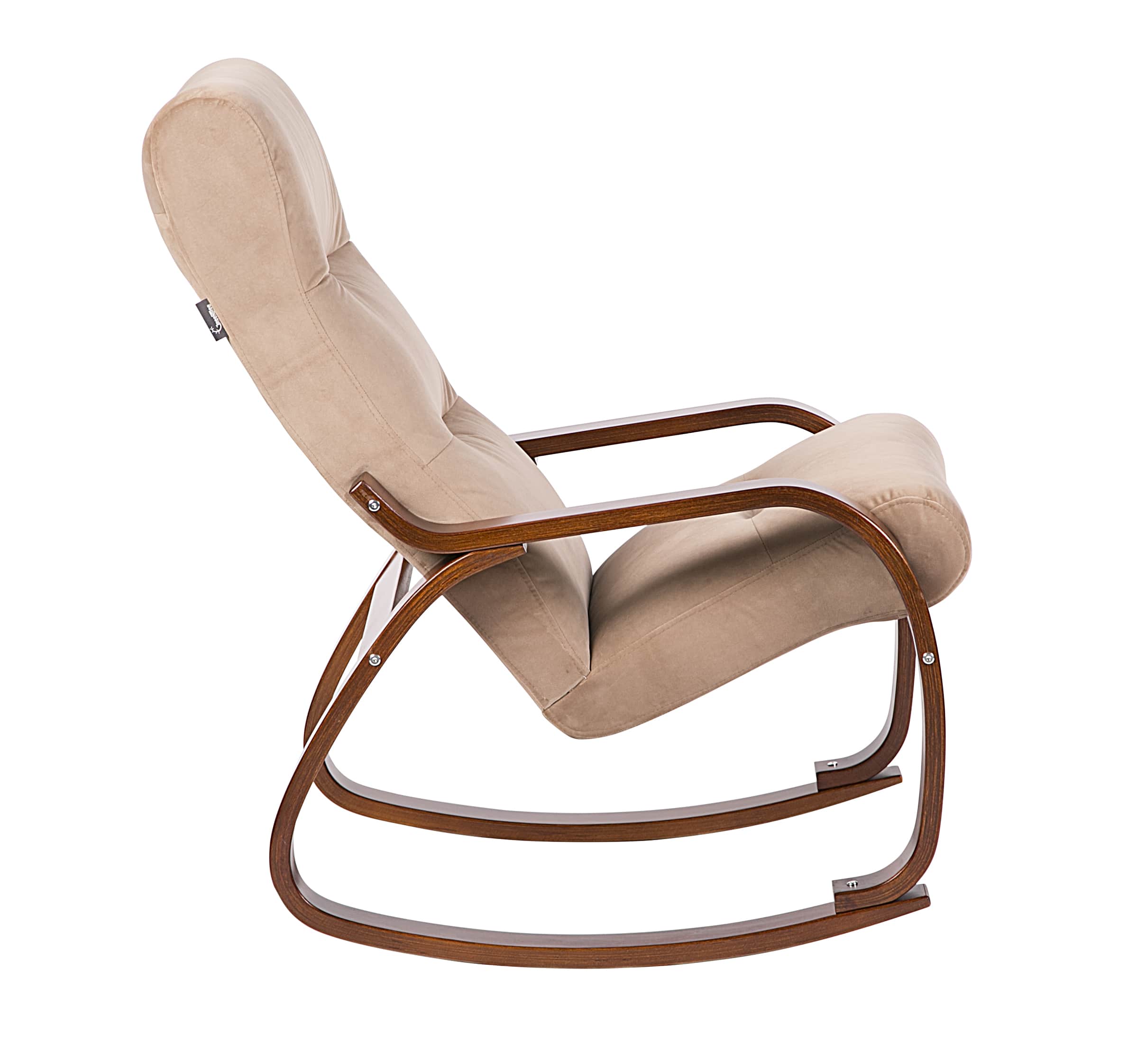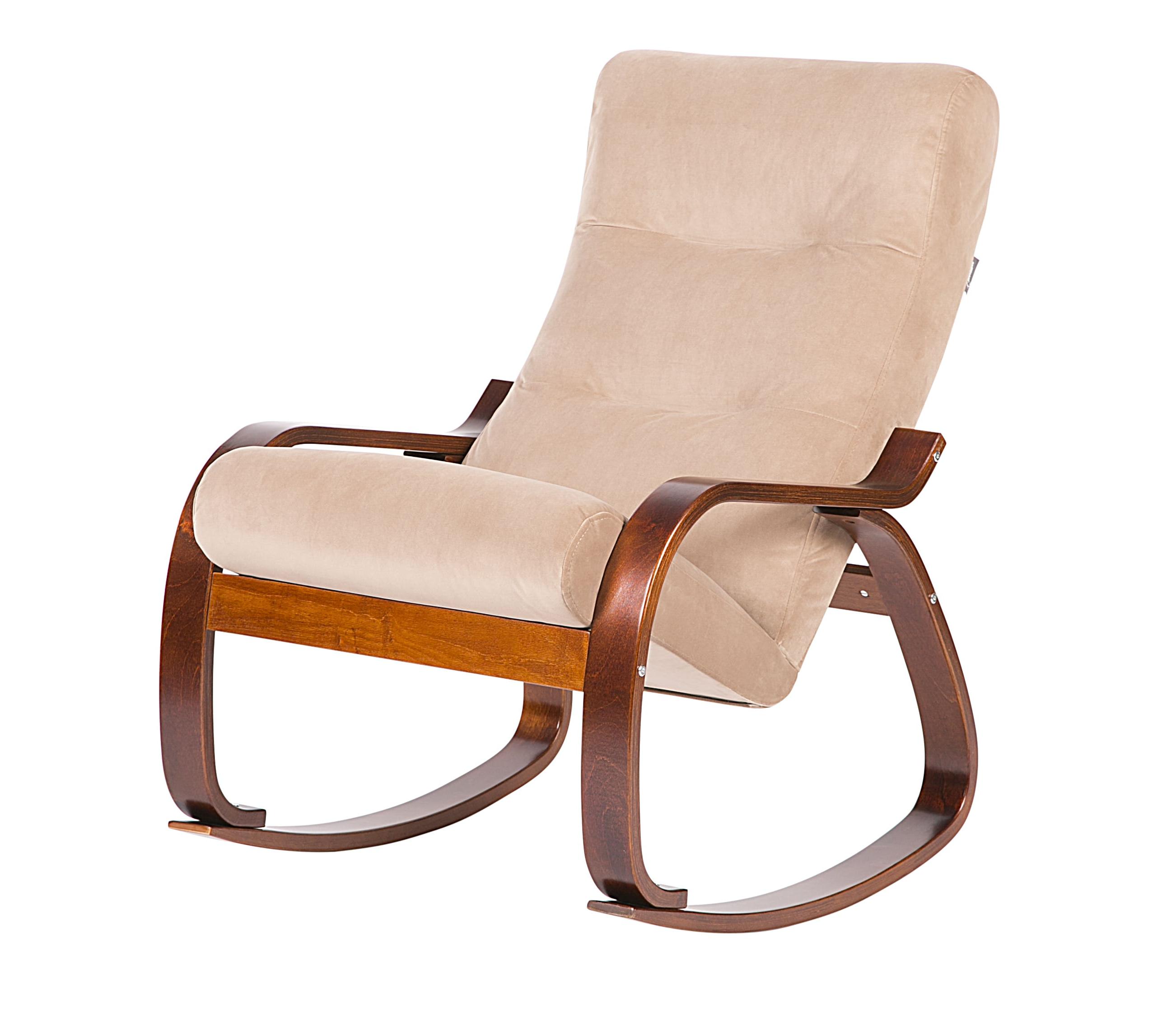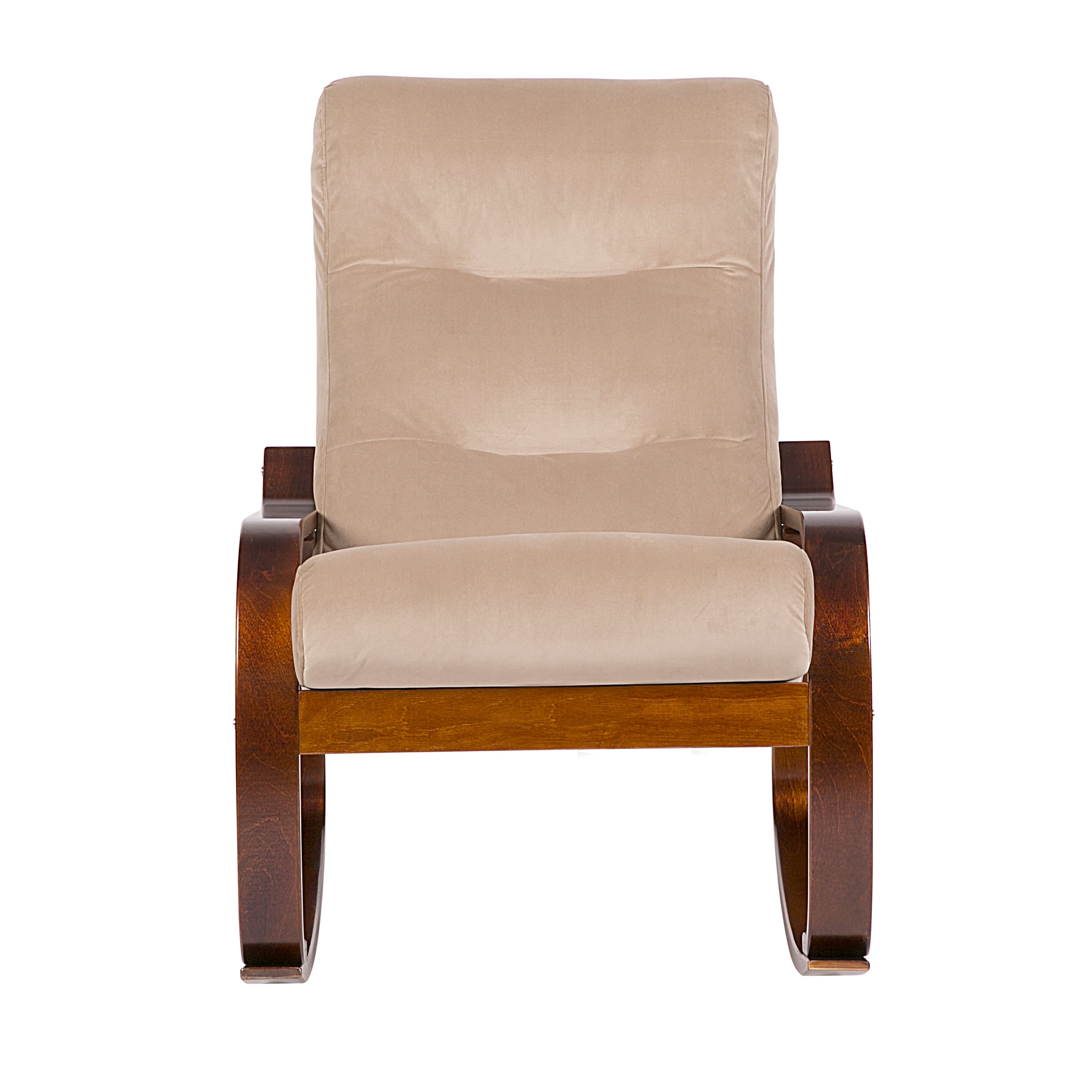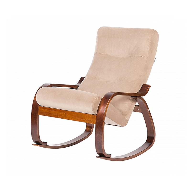 Запросить индивидуальное предложениеКресло-качалка с тканевой обивкой цвета Перламутр и каркасом цвета Вишня.