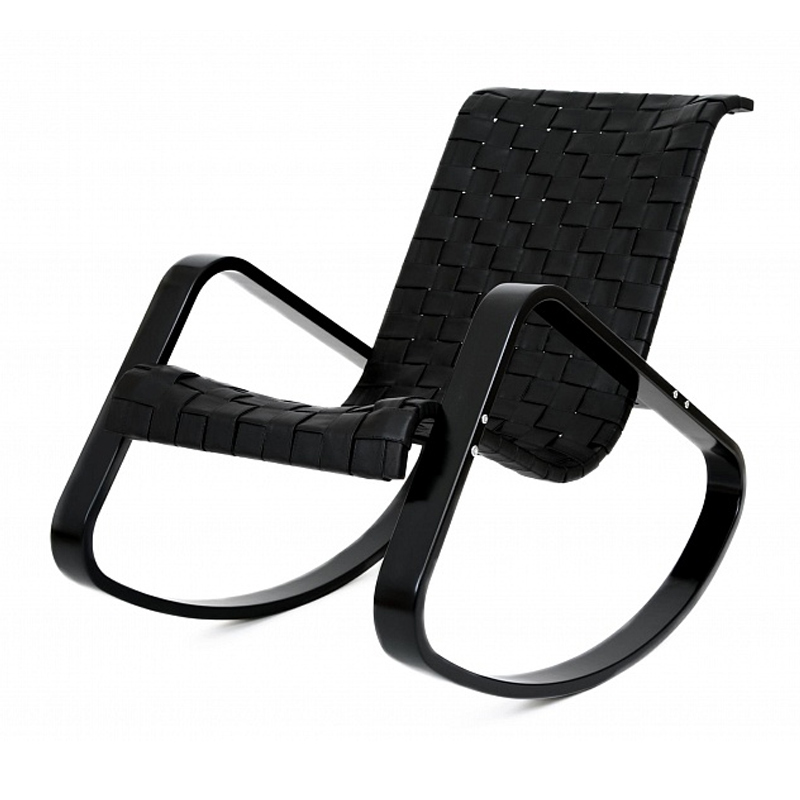 кресло-качалка Дженни Экокожа черный каркас Венге структура