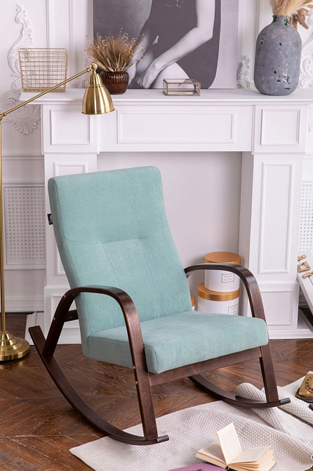 Запросить индивидуальное предложениеКресло-качалка с тканевой обивкой цвета Минт и каркасом цвета Вишня