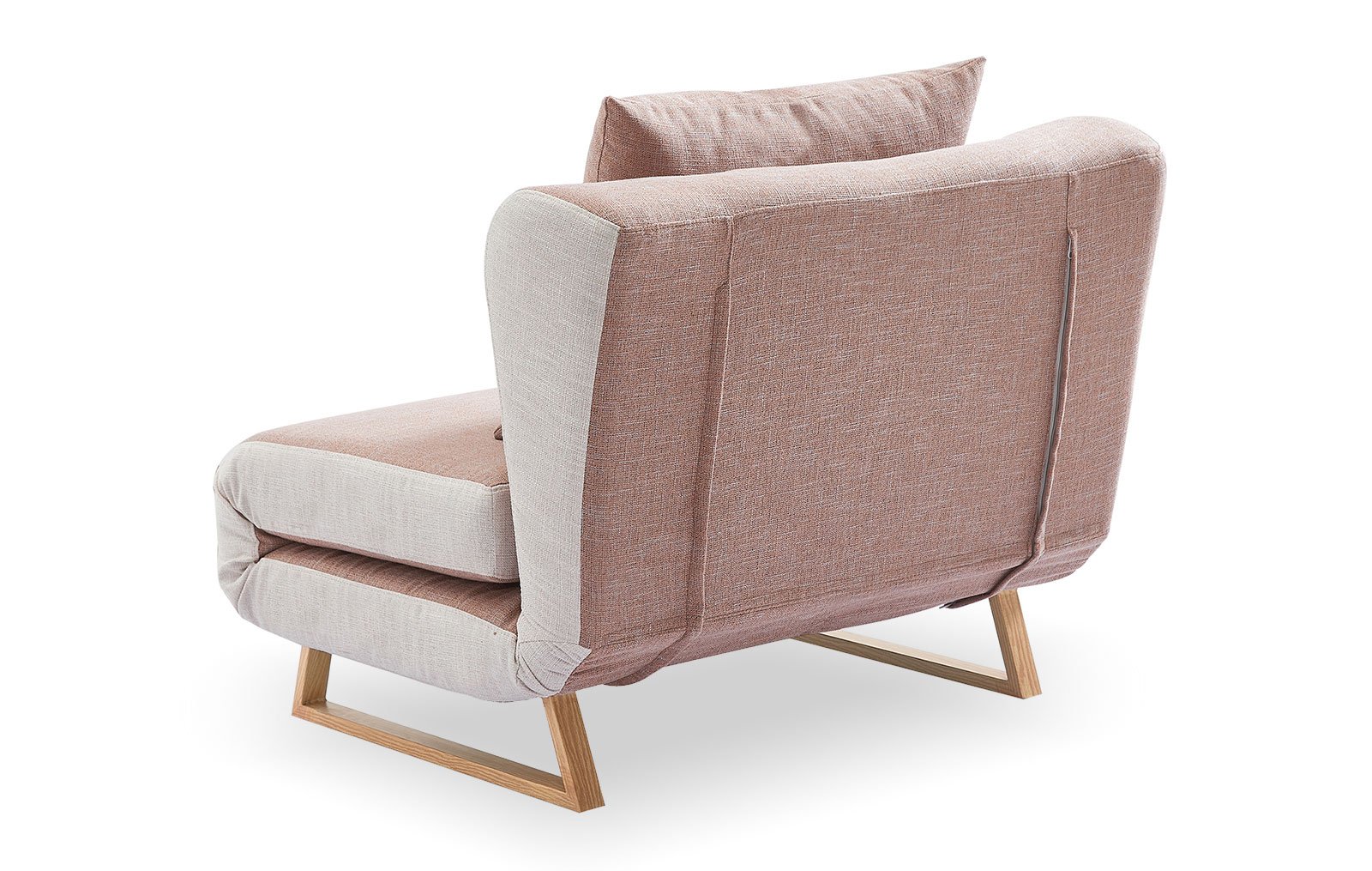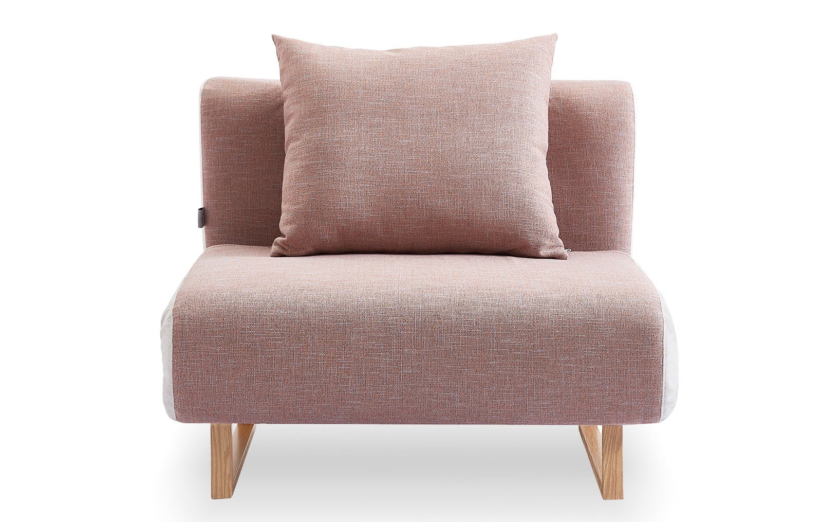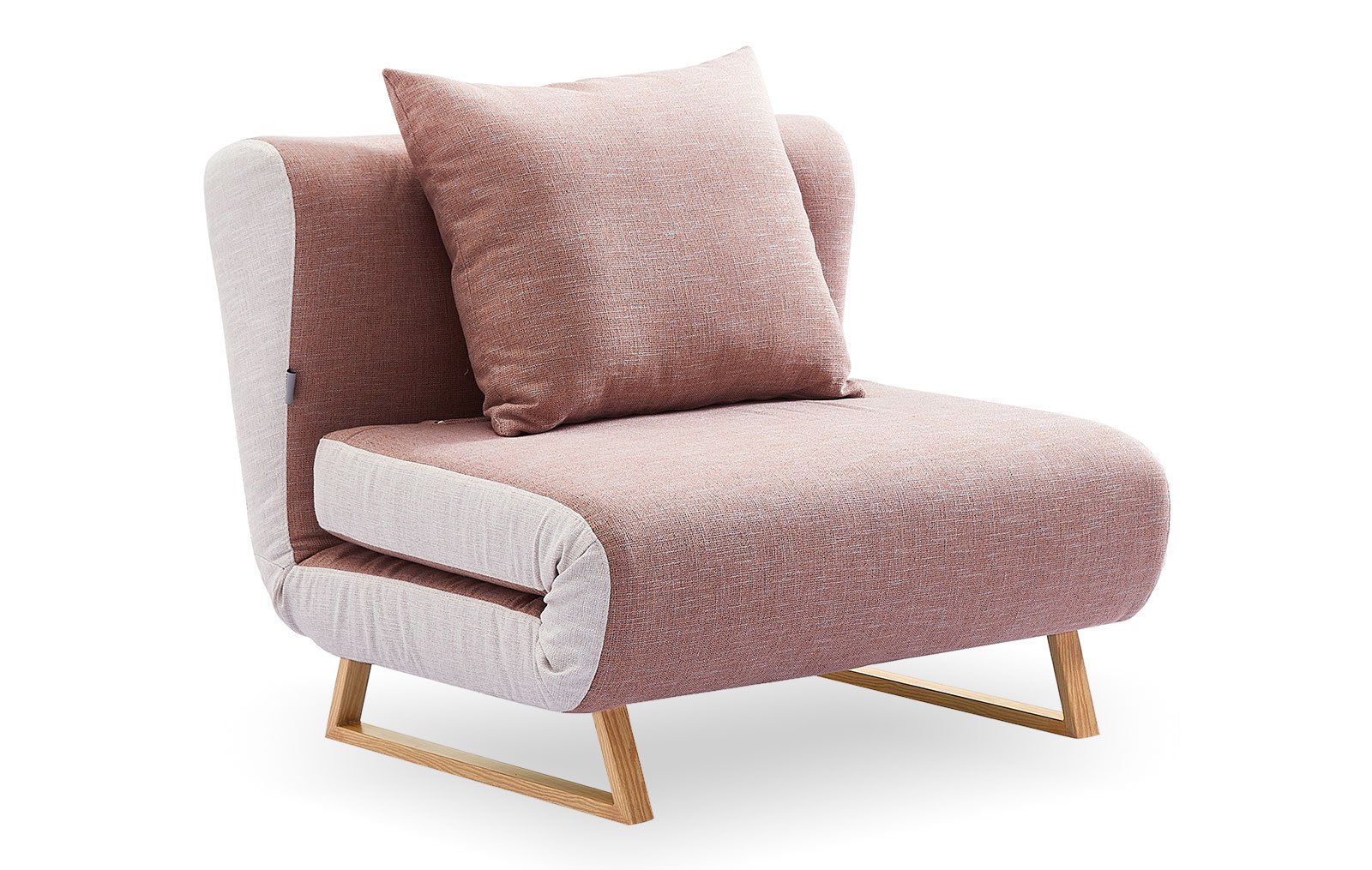 Кресло-кровать Rosy (Рози) кораллового цвета. Модель привлекает внимание плавностью линий, минималистичностью и функциональностью.Боковины кресла исполнены в контрастном оттенке слоновой кости. С таким сочетанием отлично гармонируют оригинальные металлические ножки, стилизованные под текстуру натурального светлого дерева.Обивка - практичная и не требующая особого ухода рогожка. Наполнитель - ППУ.Для превращения кресла в спальное место используется комбинированный механизм - трехуровневый трансформер. Дополнительную устойчивость обеспечивают выдвижные опоры из металла.Изделие может составить комплект с таким же диваном и пуфами.Съемный чехол из практичной ткани - деталь, которая облегчает уход за предметом. Кресло также представлено в других цветах.