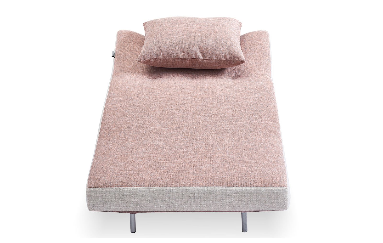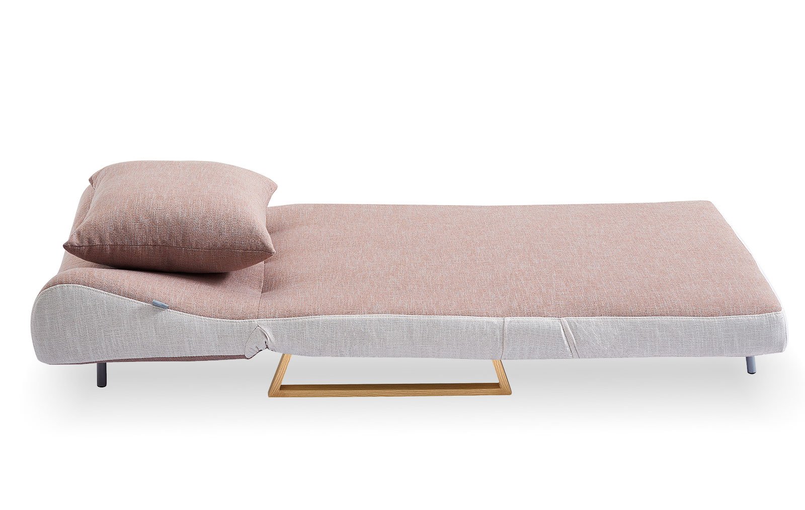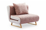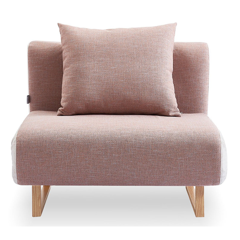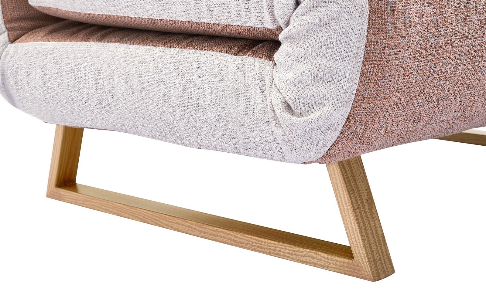 Кресло-кровать Rosy (Рози) кораллового цвета. Модель привлекает внимание плавностью линий, минималистичностью и функциональностью.Боковины кресла исполнены в контрастном оттенке слоновой кости. С таким сочетанием отлично гармонируют оригинальные металлические ножки, стилизованные под текстуру натурального светлого дерева.Обивка - практичная и не требующая особого ухода рогожка. Наполнитель - ППУ.Для превращения кресла в спальное место используется комбинированный механизм - трехуровневый трансформер. Дополнительную устойчивость обеспечивают выдвижные опоры из металла.Изделие может составить комплект с таким же диваном и пуфами.Съемный чехол из практичной ткани - деталь, которая облегчает уход за предметом. Кресло также представлено в других цветах.
