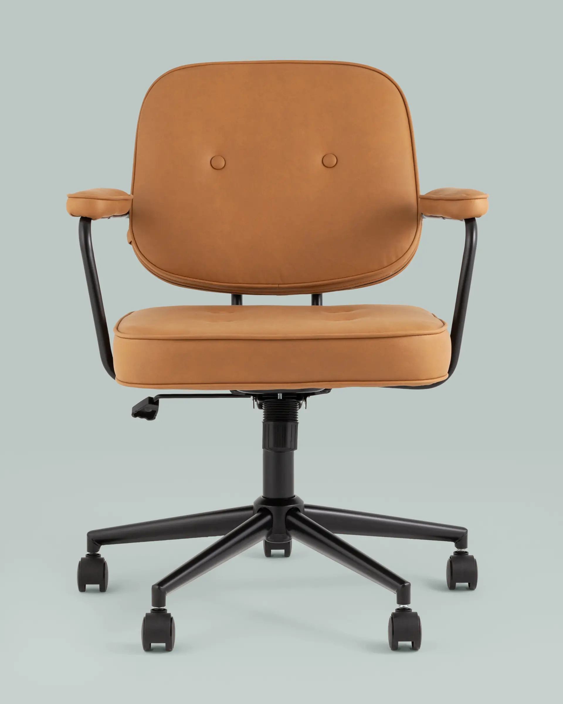 Запросить индивидуальное предложениеУютное и стильное офисное кресло в обивке из экокожи. Комфорта добавляют удобные подлокотники, а благодаря механизму регулировки высоты сиденья можно выбрать удобное положение.