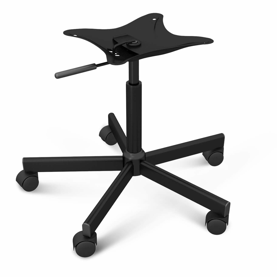 Широкая площадь опоры и пять лучей делают каркас устойчивым и надежным. Каркас выполнен из алюминия, что придает ему особую прочность, и в тоже время легкость. Покрыт порошковой краской, устойчивой к механическим повреждениям. Колеса выполнены из полипропилена и имеют резиновую основу, которая отличается устойчивой упругостью и выдерживает продолжительные нагрузки.