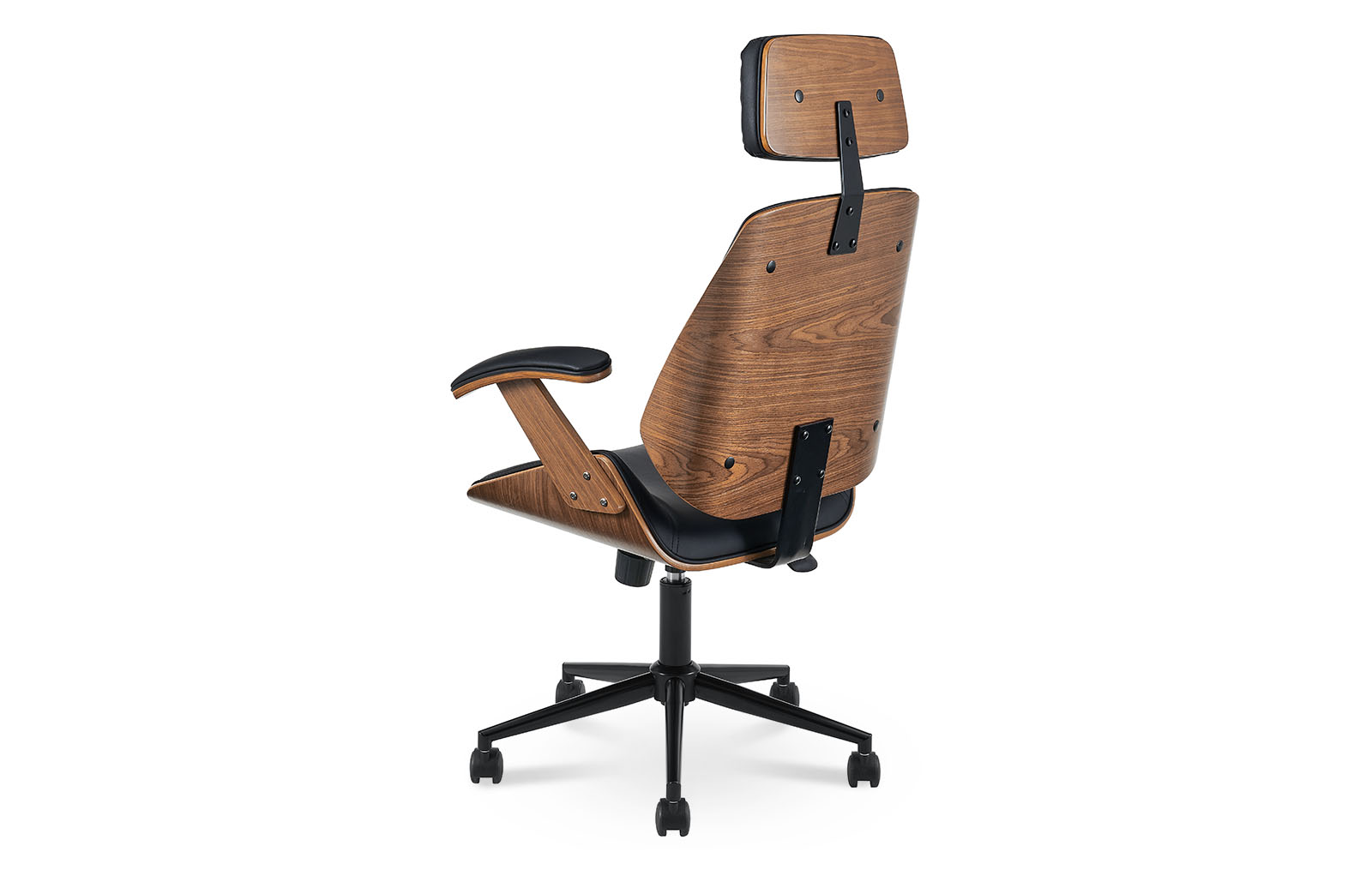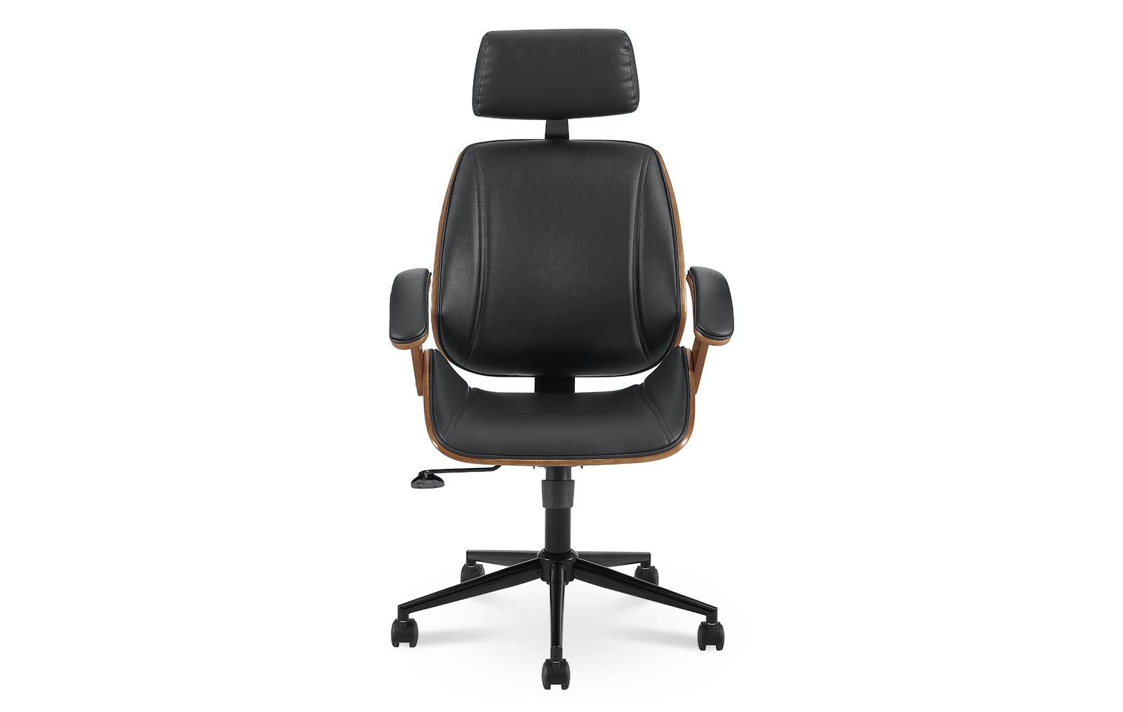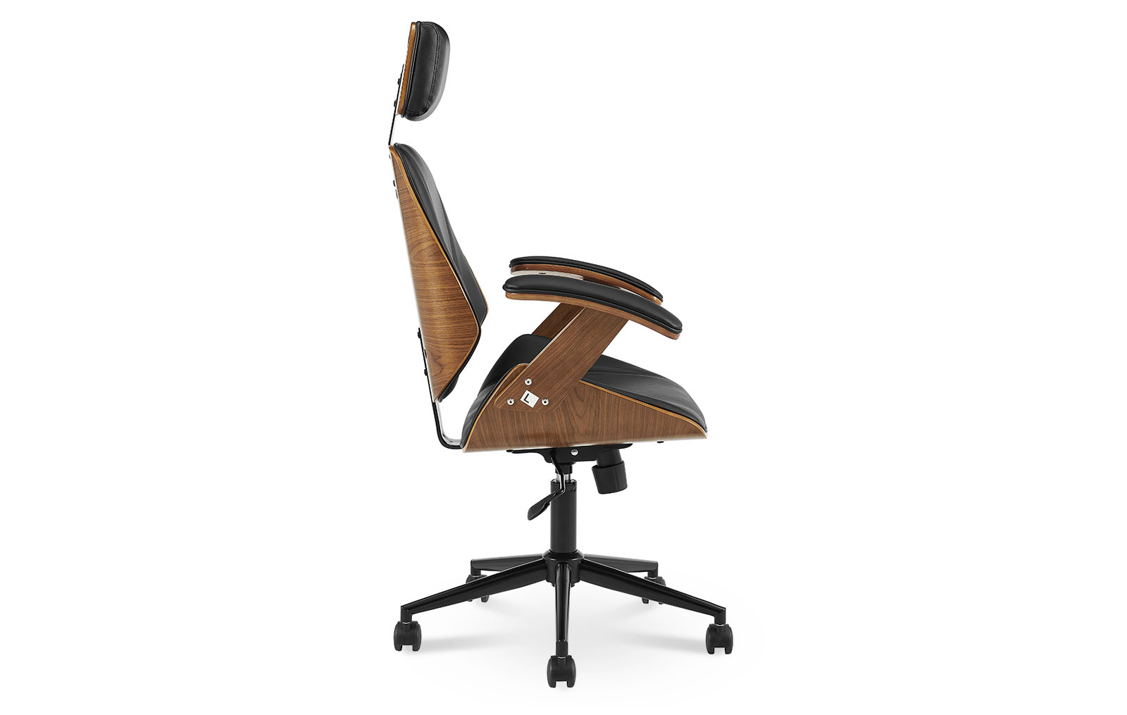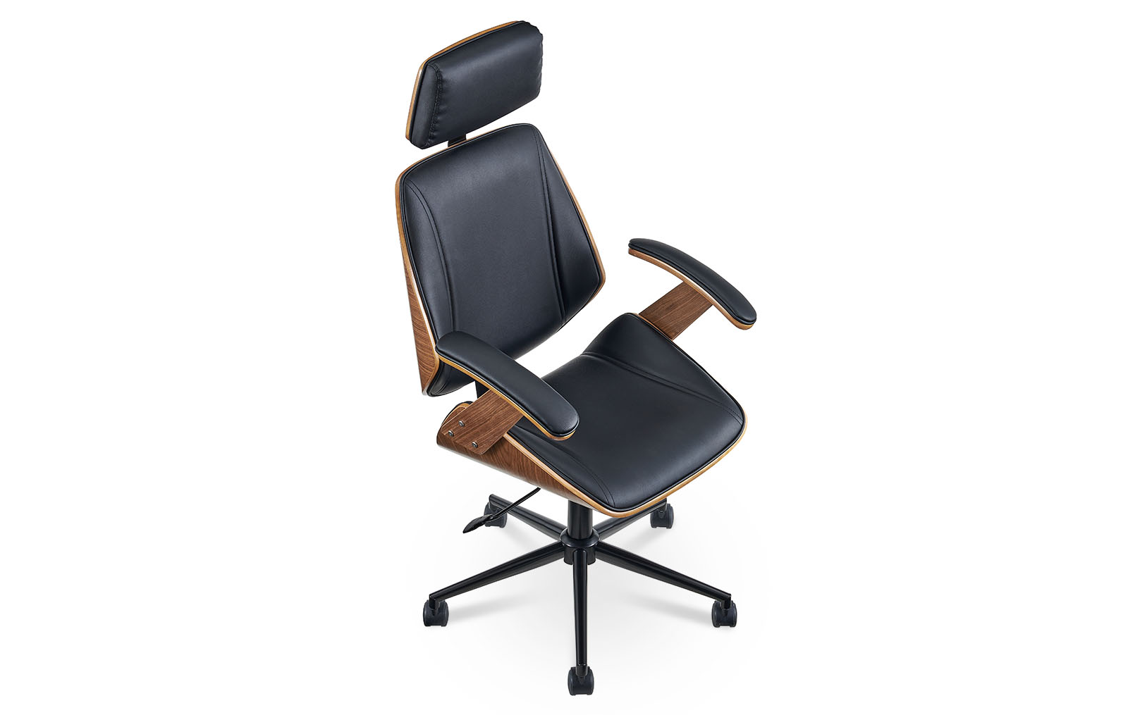 Запросить индивидуальное предложениеКресло Benjamin (Бенджамин) делает рабочее место не только стильным, но и по-настоящему комфортным. Модель имеет подлокотники и подголовник. Обивка из черной экокожи, сиденье и спинка декорированы шпоном ореха. Колесики позволяют перемещать кресло без усилий, не повреждая напольное покрытие. Достоинство модели - возможность регулирования высоты расположения сидения.