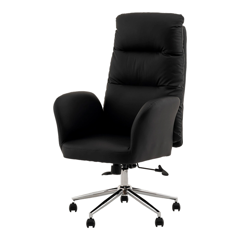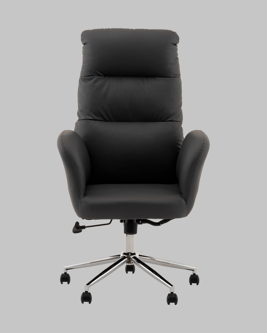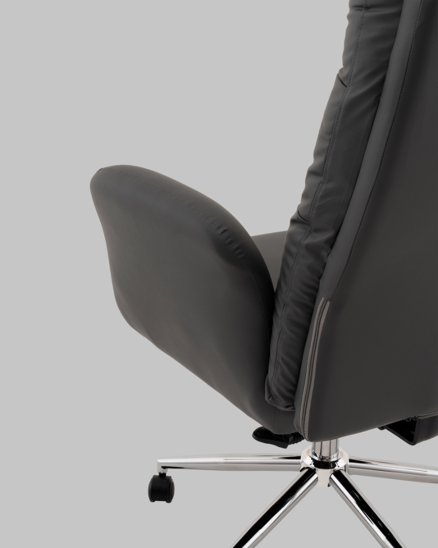 Плавные формы подлокотников и продуманная форма спинки создают дополнительную поддержку. Прочная металлическая крестовина и устойчивые нейлоновые ролики рассчитаны на нагрузку до 120 кг, гарантируя долговечность и устойчивость.