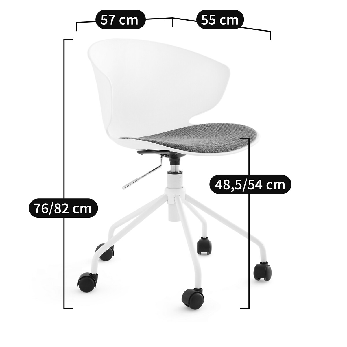 • Ножки из стали с белым эпоксидным покрытием с пятью колесиками из полиамида