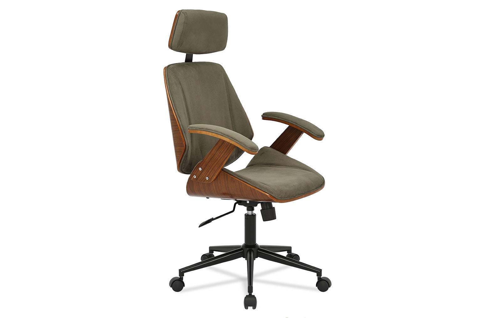 Запросить индивидуальное предложениеКресло Benjamin (Бенджамин) делает рабочее место не только стильным, но и по-настоящему комфортным. Модель имеет подлокотники и подголовник. Обивка из эконубука оливково-зеленого оттенка, сиденье и спинка декорированы шпоном ореха. Колесики позволяют перемещать кресло без усилий, не повреждая напольное покрытие. Достоинство модели - возможность регулирования высоты расположения сидения.