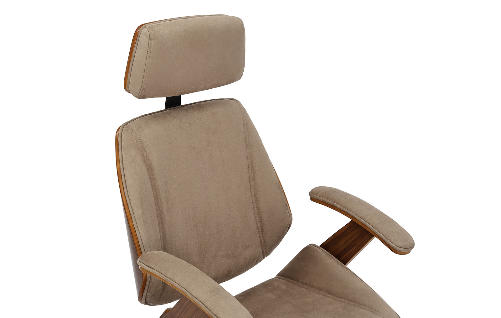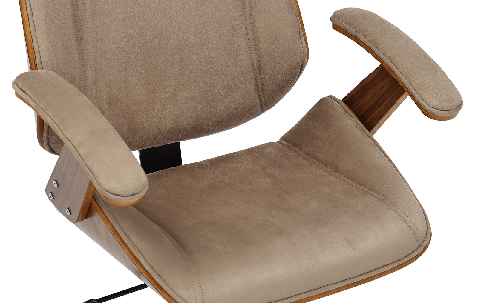 Запросить индивидуальное предложениеКресло Benjamin (Бенджамин) делает рабочее место не только стильным, но и по-настоящему комфортным. Модель имеет подлокотники и подголовник. Обивка из темно-бежевого эконубука, сиденье и спинка декорированы шпоном ореха. Колесики позволяют перемещать кресло без усилий, не повреждая напольное покрытие. Достоинство модели - возможность регулирования высоты расположения сидения.