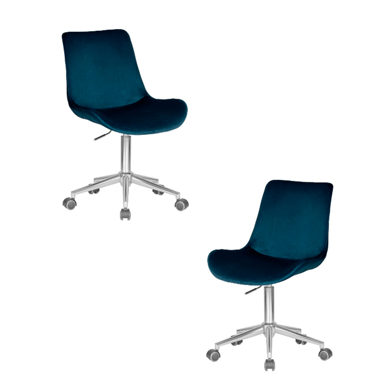 Набор 2 шт Кресло офисное DOBRIN DORA, синий велюр (1922-20), хромированная сталь