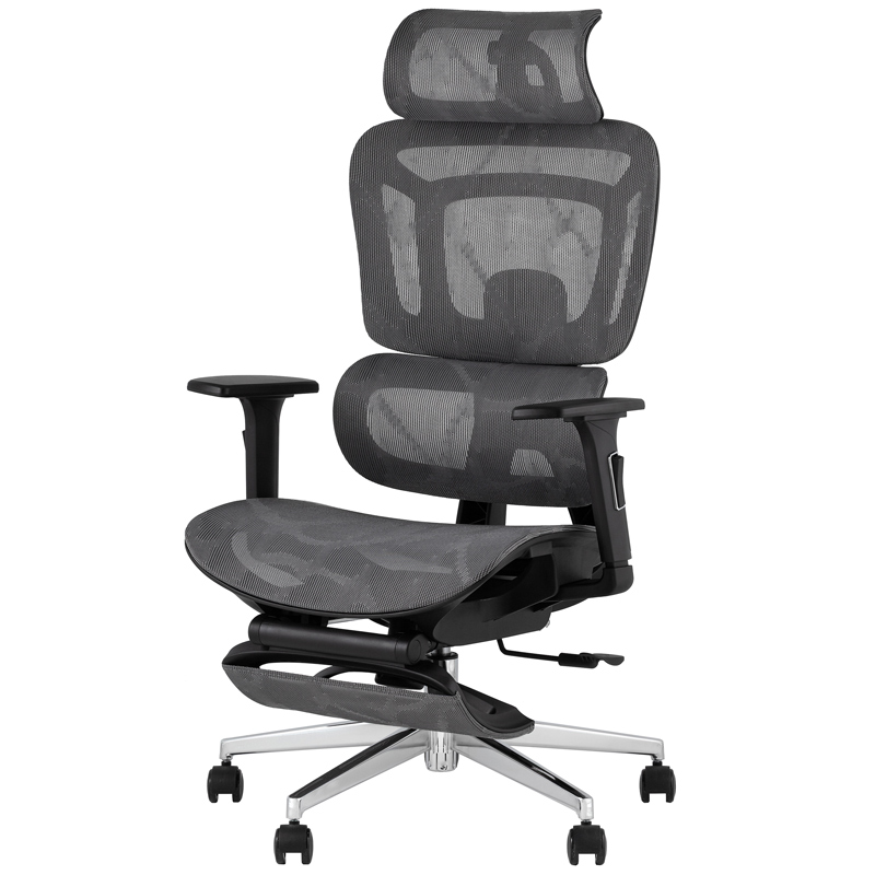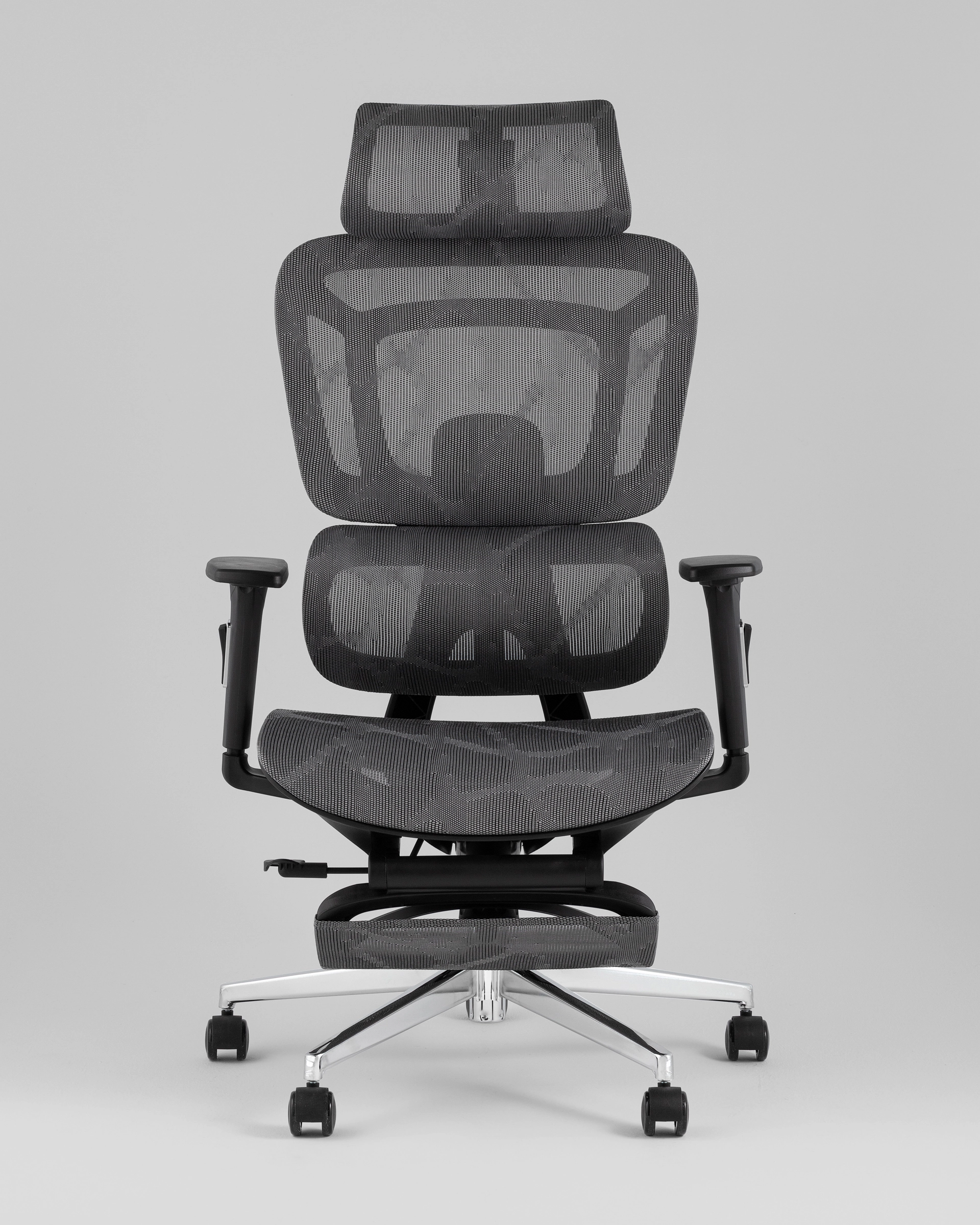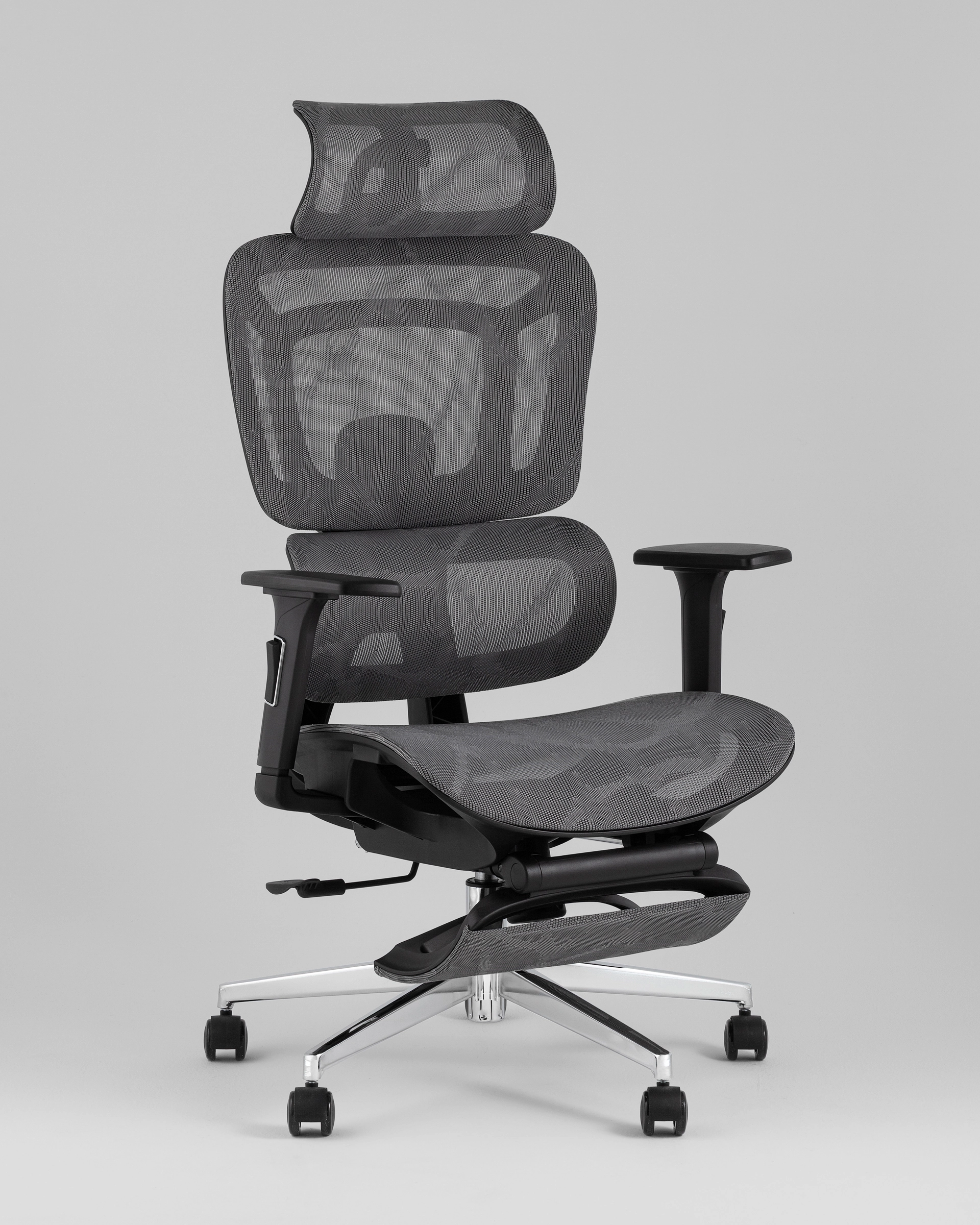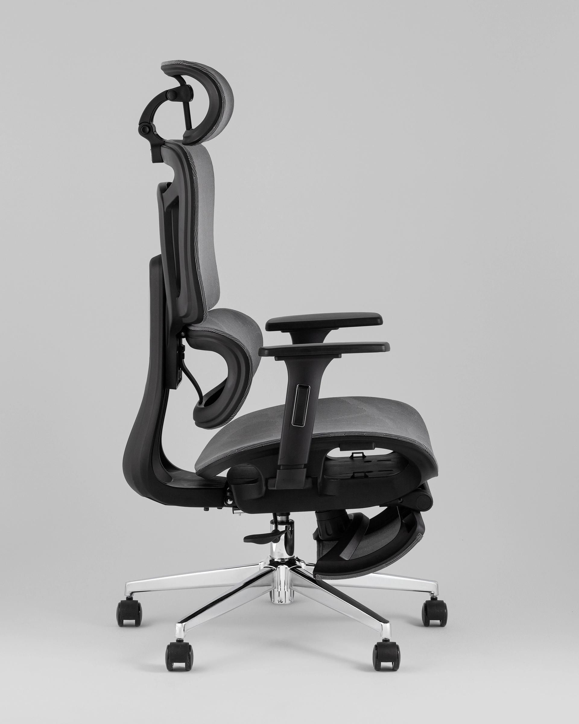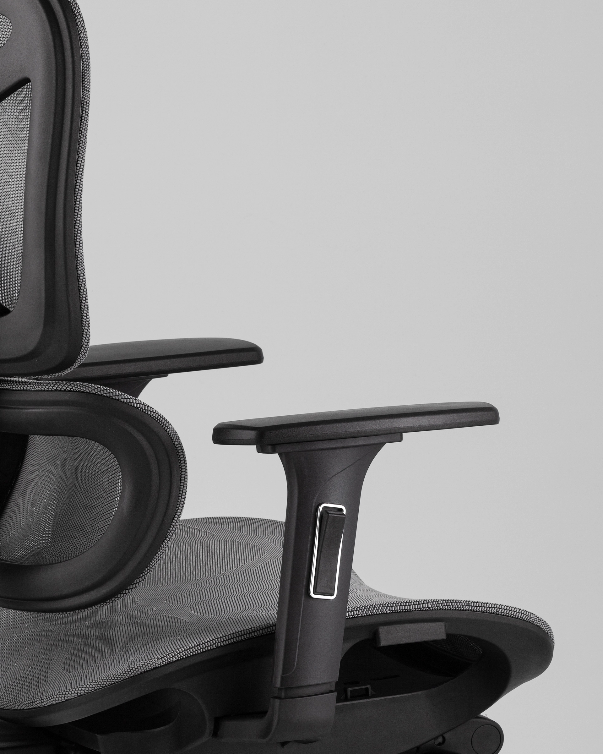 Кресло оснащено подголовником с возможностью регулировки, эргономичной высокой спинкой и 3D-подлокотниками — с изменением высоты, глубины и ширины. Благодаря синхромеханизму с мультиблоком можно зафиксировать удобное положение и обеспечить оптимальную поддержку спины. Газлифт 3 класса позволяет плавно регулировать высоту сиденья от 45 до 53 см. Встроенная выдвижная оттоманка обеспечивает дополнительный комфорт и позволяет удобно расположить ноги во время перерыва.
