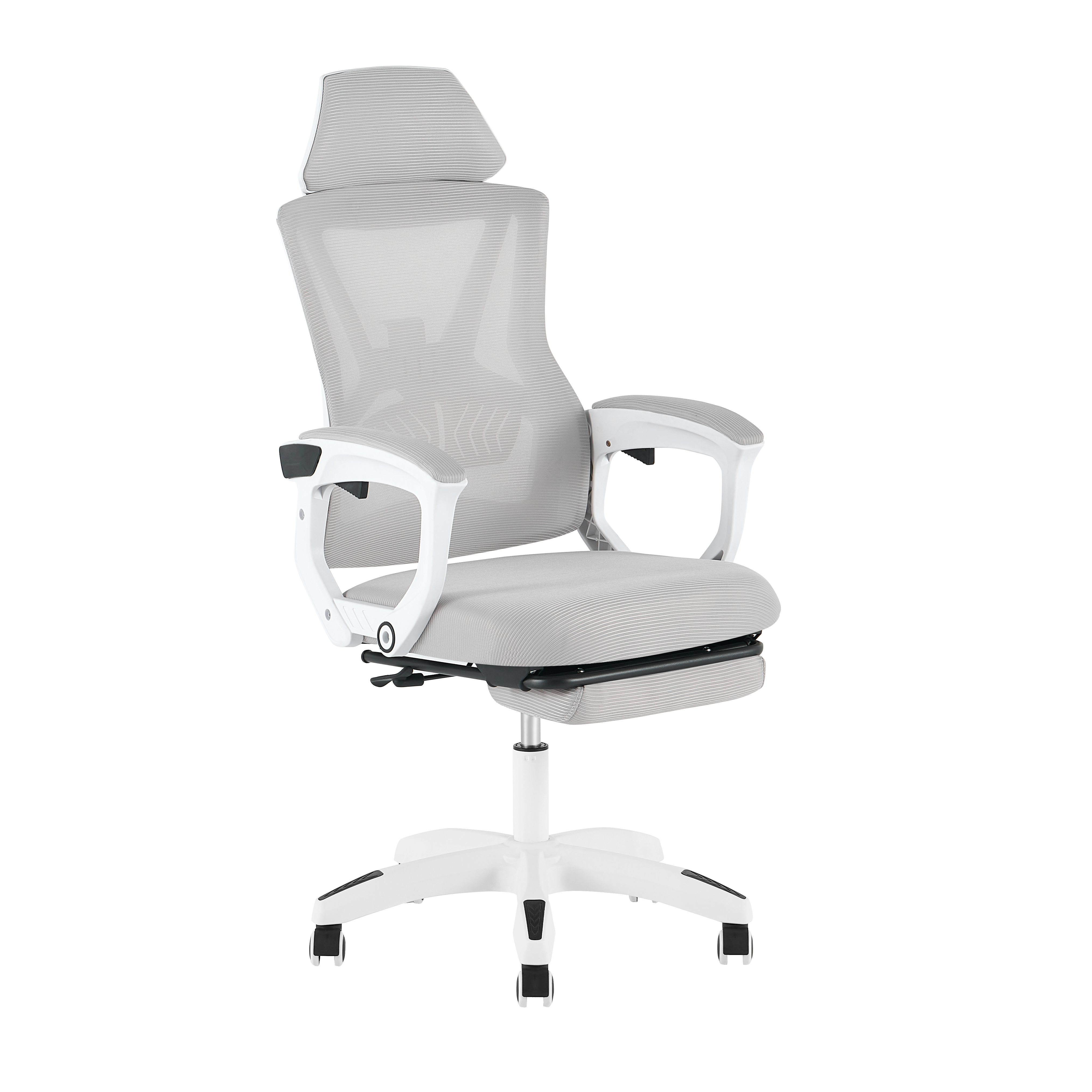 Механизм пиастра позволяет отрегулировать высоту сиденья, а функция качания (топ-ган) даёт дополнительную свободу движений. Удобная оттоманка выдвигается при необходимости и превращает кресло в зону полноценного отдыха прямо у рабочего стола.