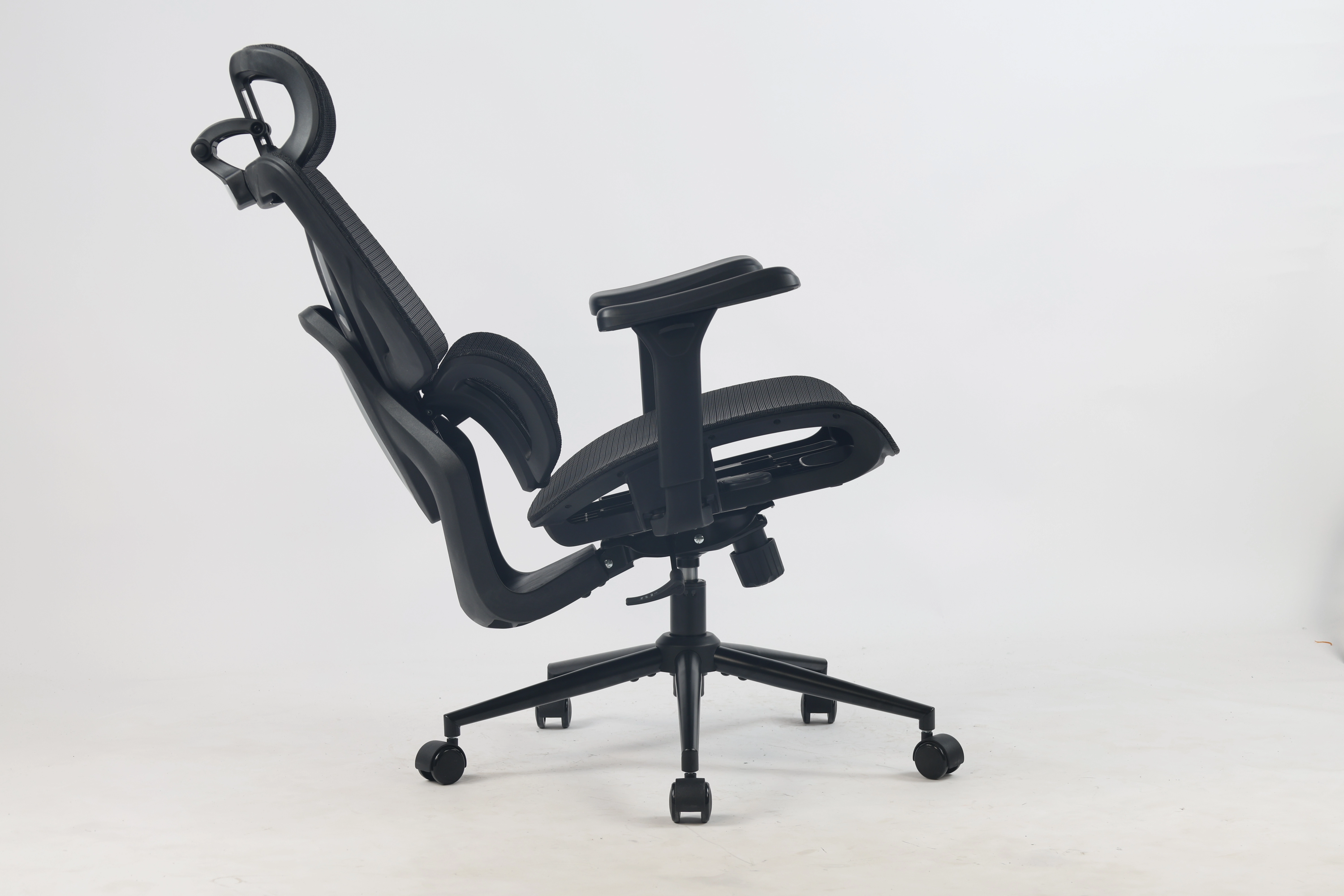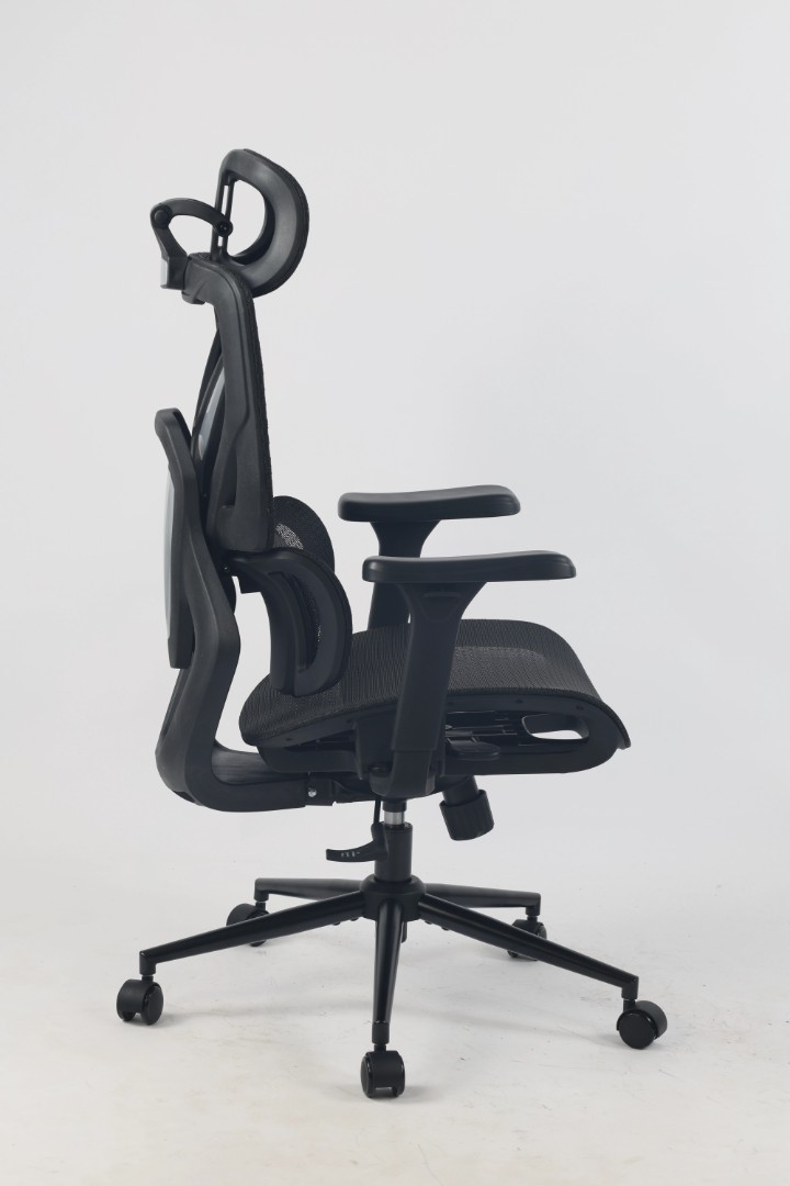 Обивка выполнена из прочной сетчатой ткани, которая обеспечивает отличную вентиляцию — особенно актуально при длительном сидении. Сетка не накапливает тепло, устойчива к износу и проста в уходе. Эргономичная форма спинки с поясничной поддержкой, регулируемый подголовник и настраиваемая глубина сиденья позволяют подстроить кресло под индивидуальные особенности пользователя.