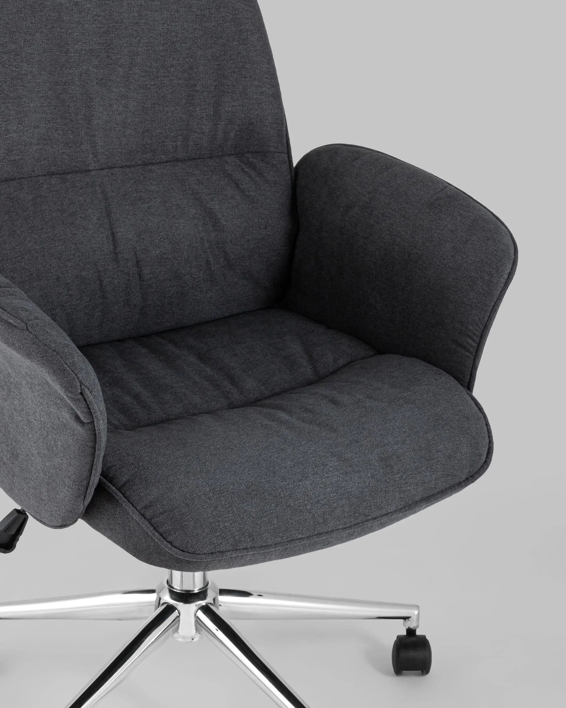 Комфорта добавляют удобные подлокотники, а благодаря механизму регулировки высоты и качания можно выбрать удобное положение.