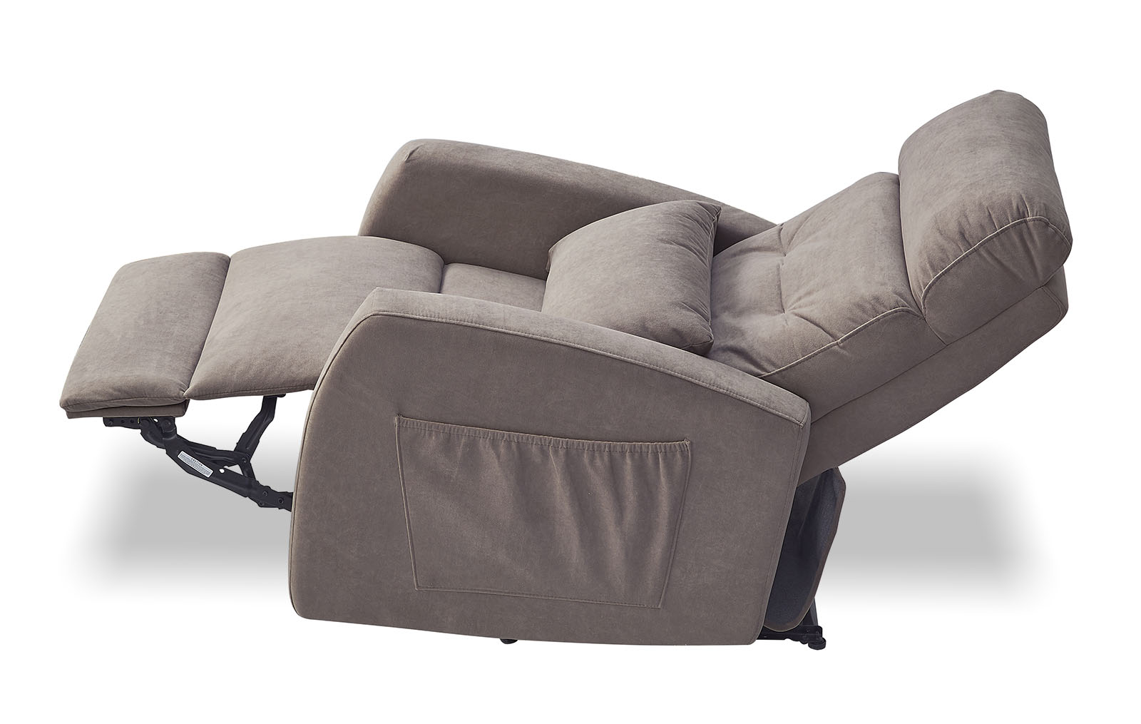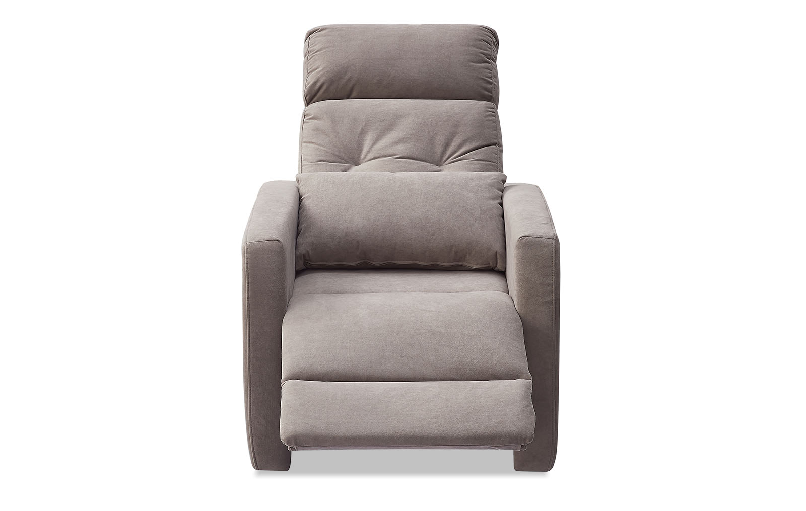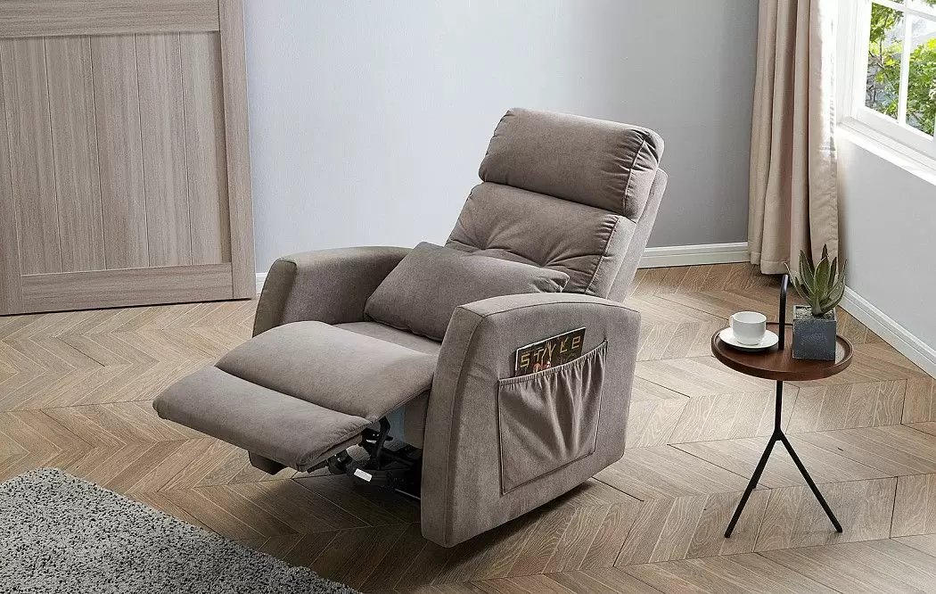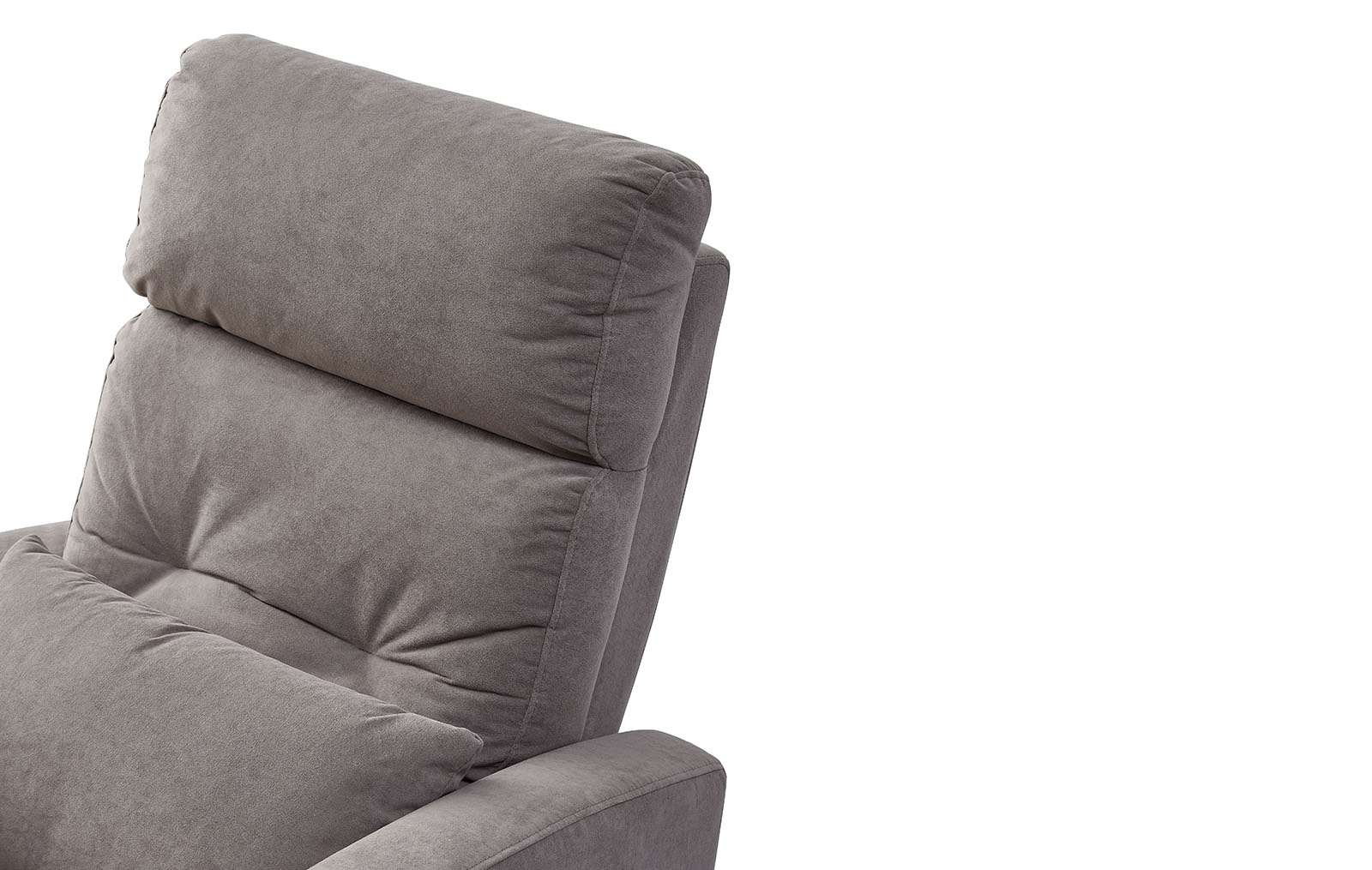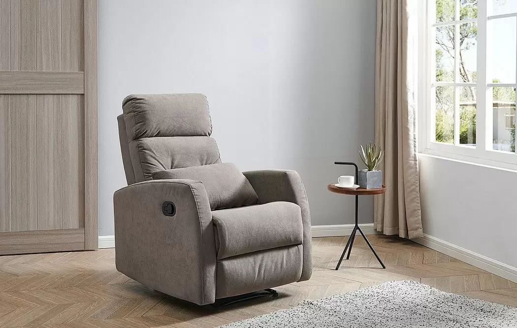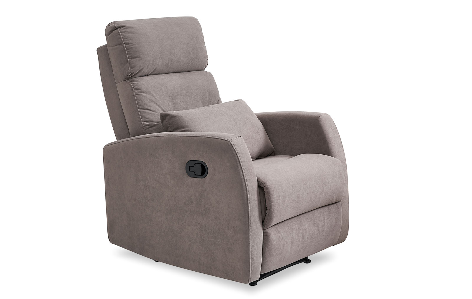 Данная модель с приятной на ощупь тканевой обивкой создана для комфортного отдыха. Есть возможность откинуть спинку и увеличить длину сиденья, превращая кресло в мягкий и уютный шезлонг. Для дополнительного удобства предусмотрена подушка под спину, а также карман на одном из бортиков, в который можно положить журнал, пульт и пр.