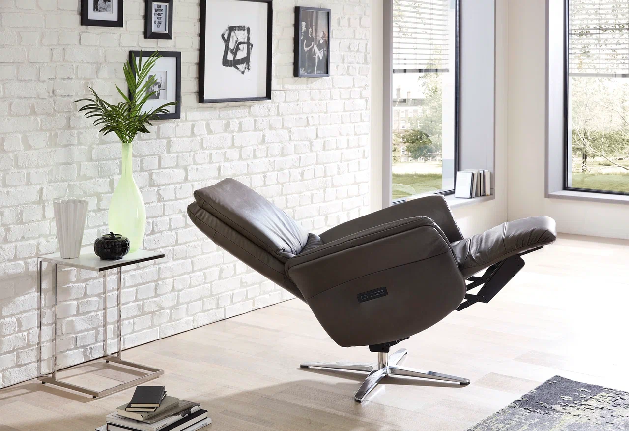 Запросить индивидуальное предложениеПоворотное массажное кресло с электрическим реклайнером. 3 типа оснований на выбор: стальной диск, крестовина (хром или черный матовый), платформа в декоре из натурального шпона (9 оттенков). 2 мотора, бесступенчатая регулировка положения, регулировка подголовника, 4х-зонный вибромассаж. Управление: кнопки или пульт. 3 размера S, M, L по одной цене для пользователей ростом до 173, 185 и выше 186 см.Указаны габариты для размера M, другие размеры - по запросу. Расчетная нагрузка - до 150 кг. Гарантия фабрики - 5 лет. 2 уровня комфорта: мягкая холодная пена или независимые пружины. За доп.плату: инфракрасный прогрев, USB-слот, аккумулятор, LED-лампа для чтения, функция помощи при вставании.