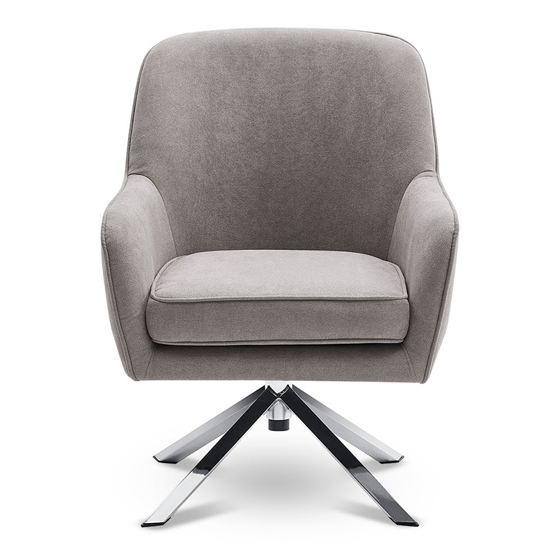 Обивка из приятного на ощупь шенилла нейтрального серо-бежевого оттенка. Благодаря лаконичному дизайну и универсальному цвету обивки кресло гармонично впишется в любой современный интерьер.