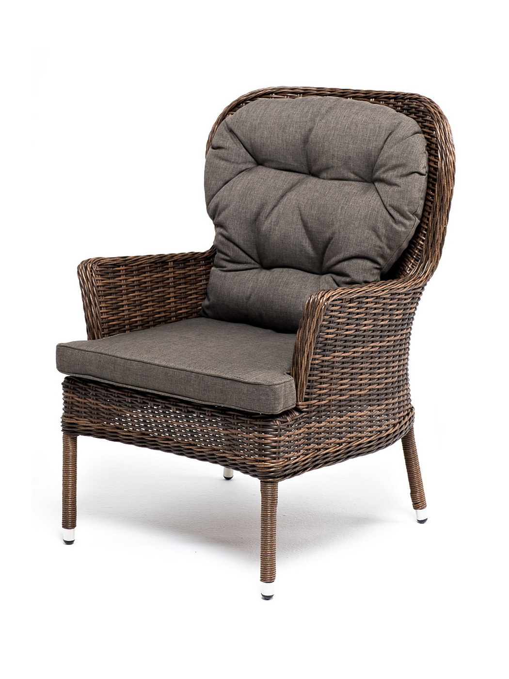"Алиса" кресло плетеное, цвет коричневый с подушками