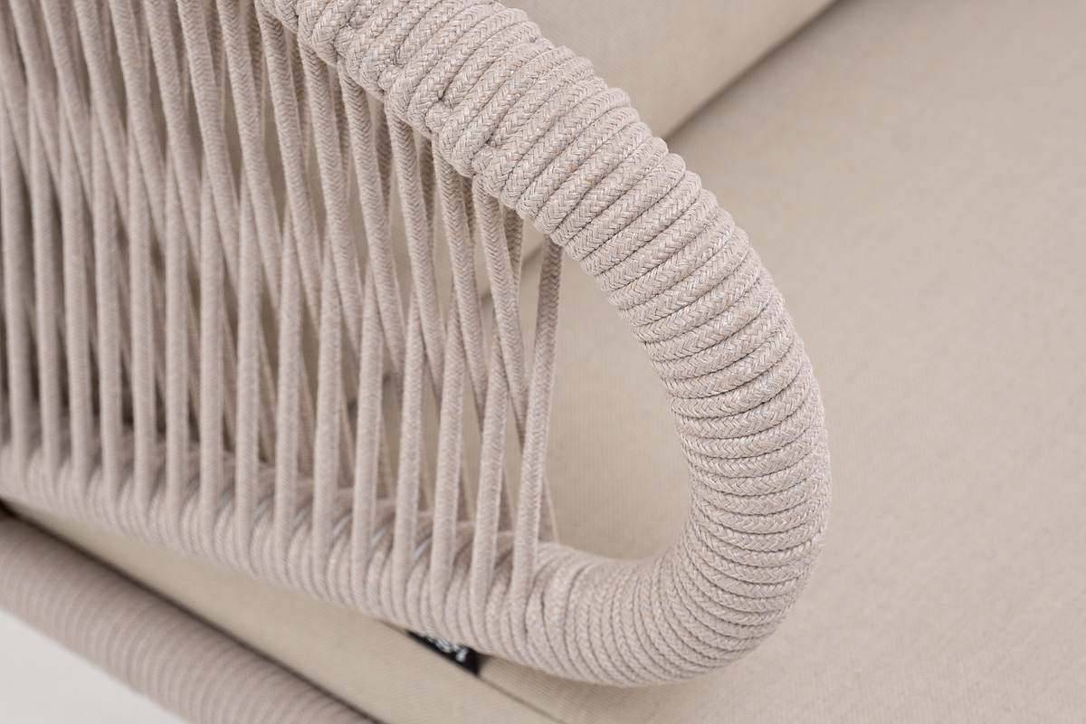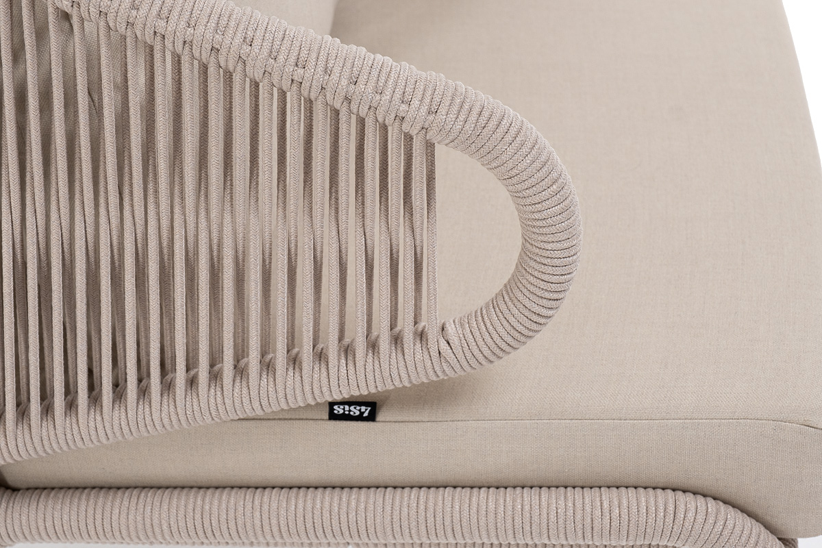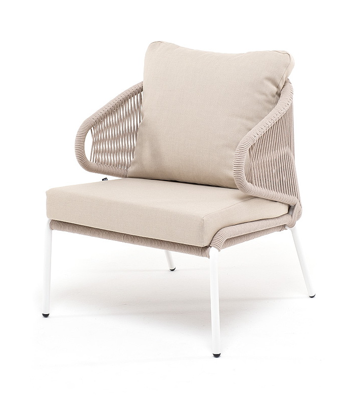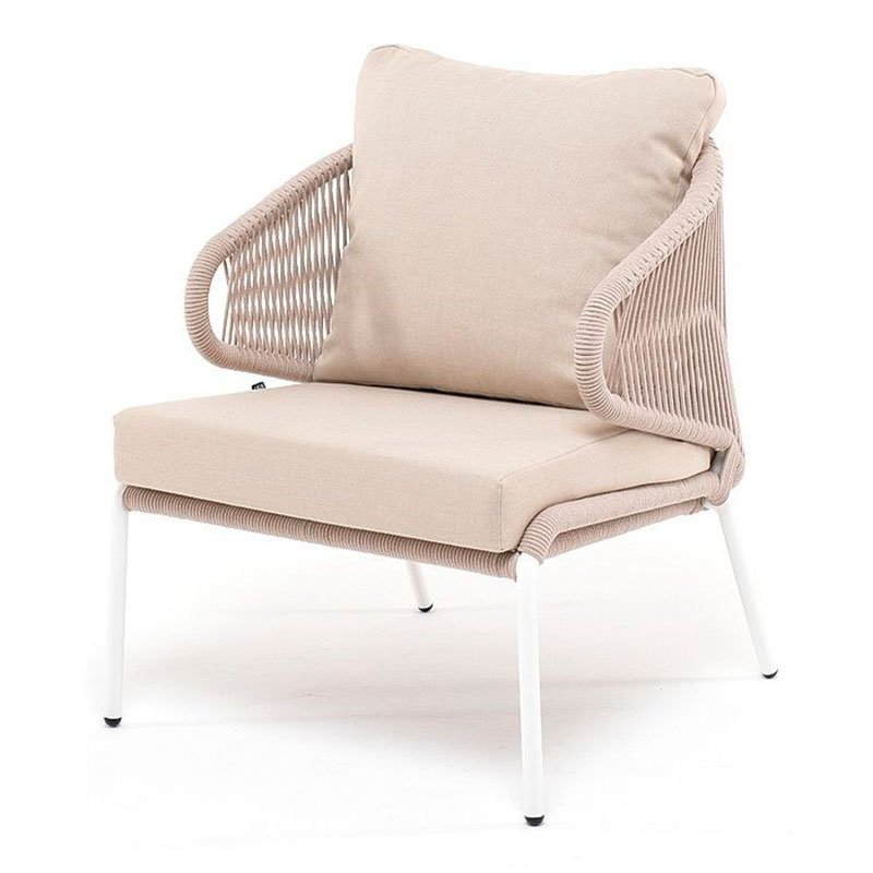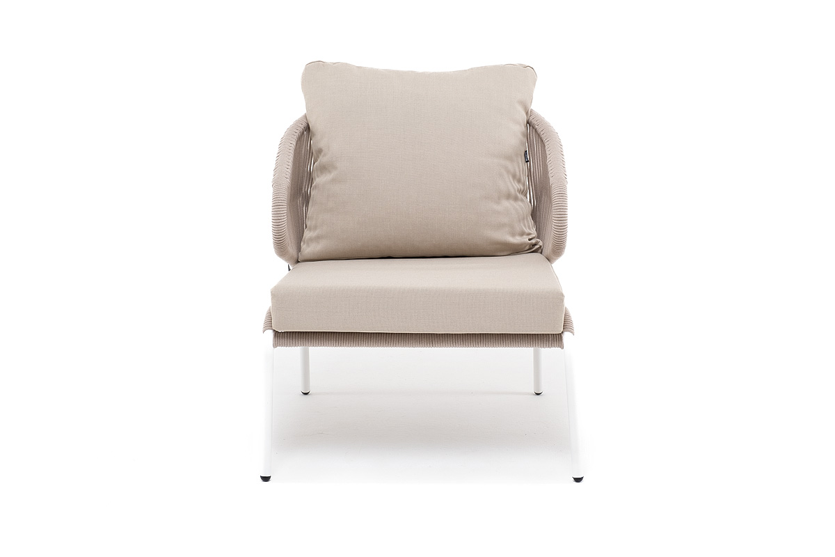 "Милан" кресло плетеное из роупа, каркас алюминий белый, роуп темно-серый круглый, ткань бежевая
