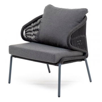 "Милан" кресло плетеное из роупа, каркас алюминий темно-серый (RAL7024) муар, роуп темно-серый круглый, ткань темно-серая 027