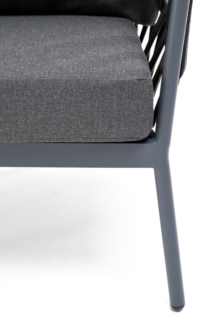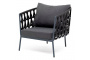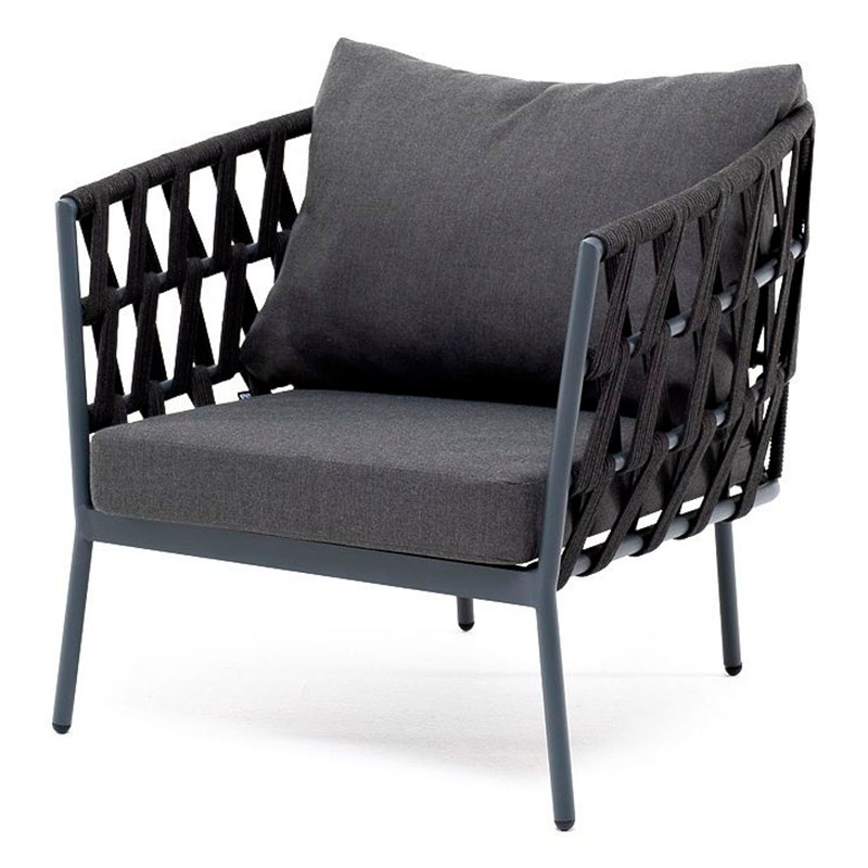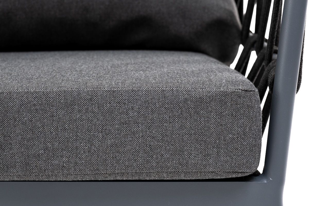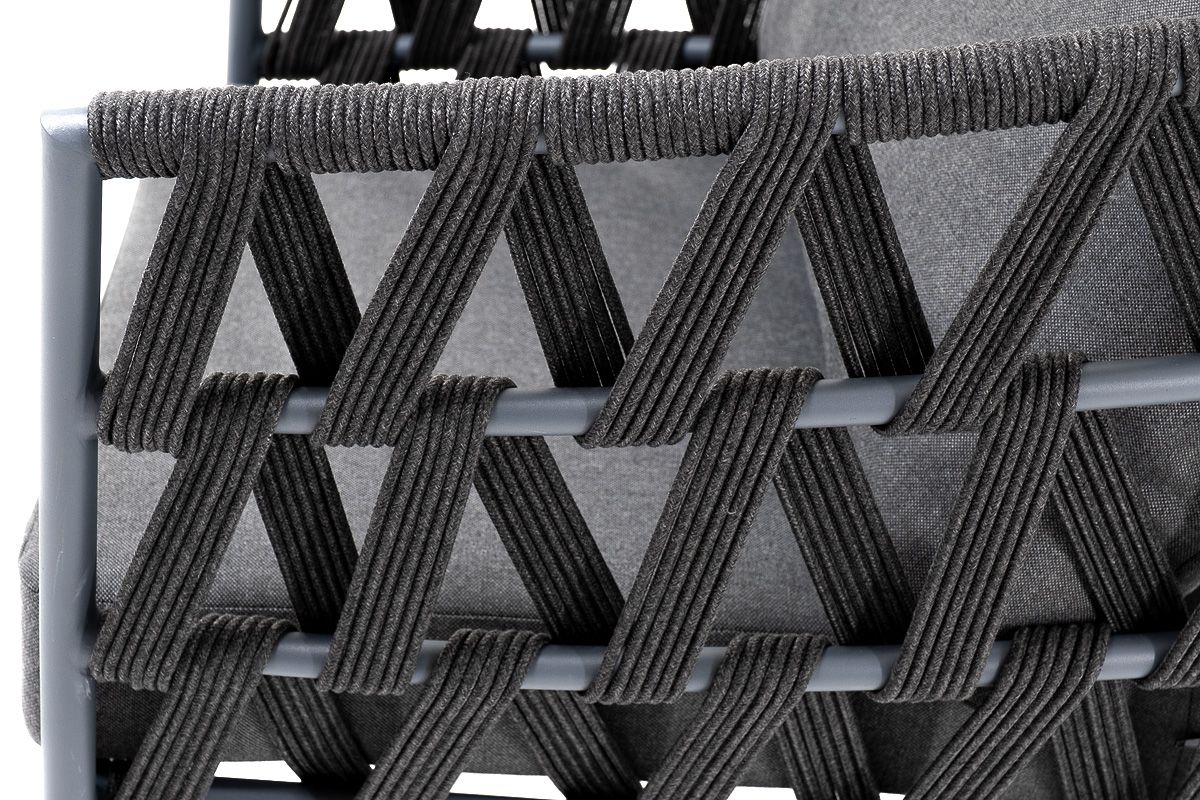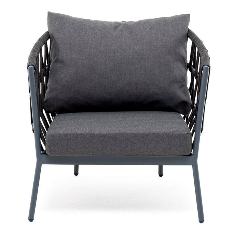 "Диего" кресло плетеное из роупа, каркас алюминий темно-серый (RAL7024) муар, роуп темно-серый круглый, ткань темно-серая 027