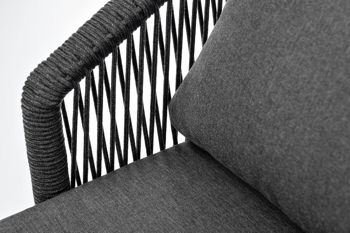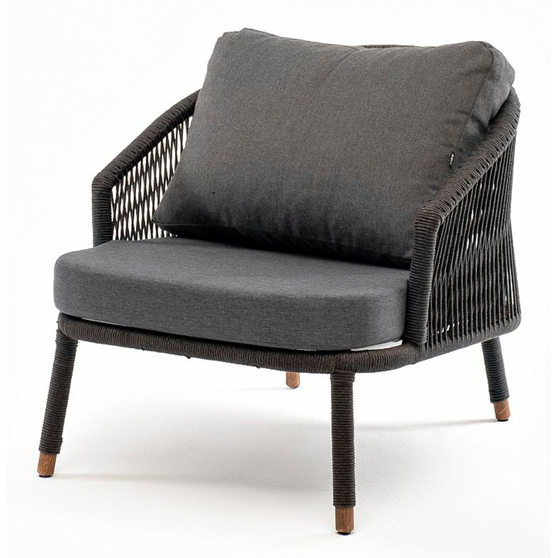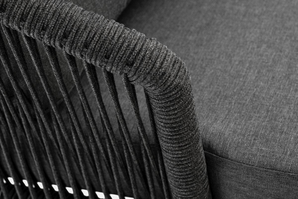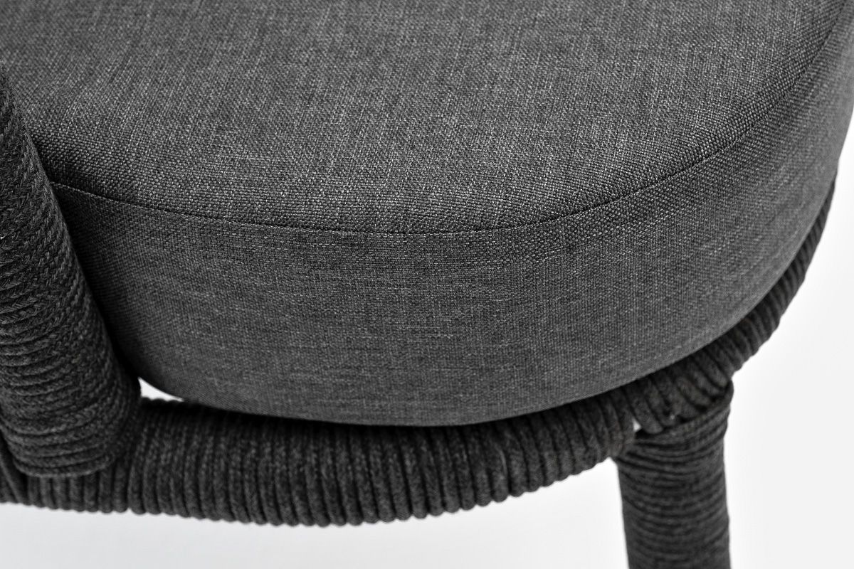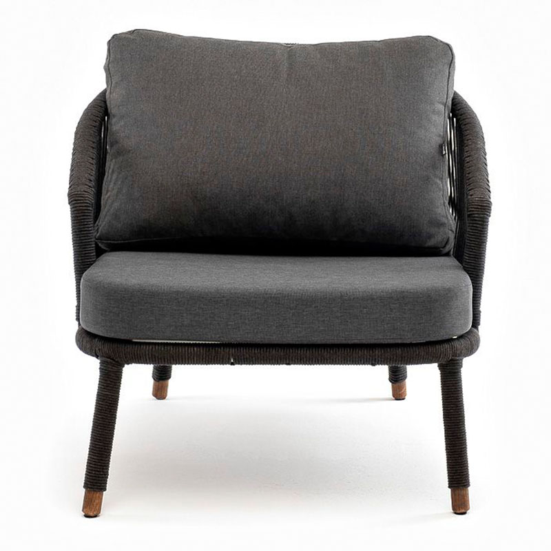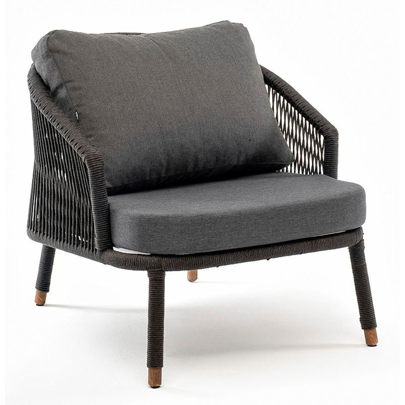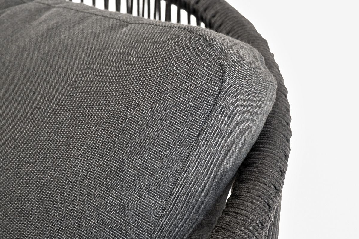 "Верона" кресло плетеное из роупа, каркас алюминий темно-серый (RAL7024) муар, роуп темно-серый круглый, ткань темно-серая 027
