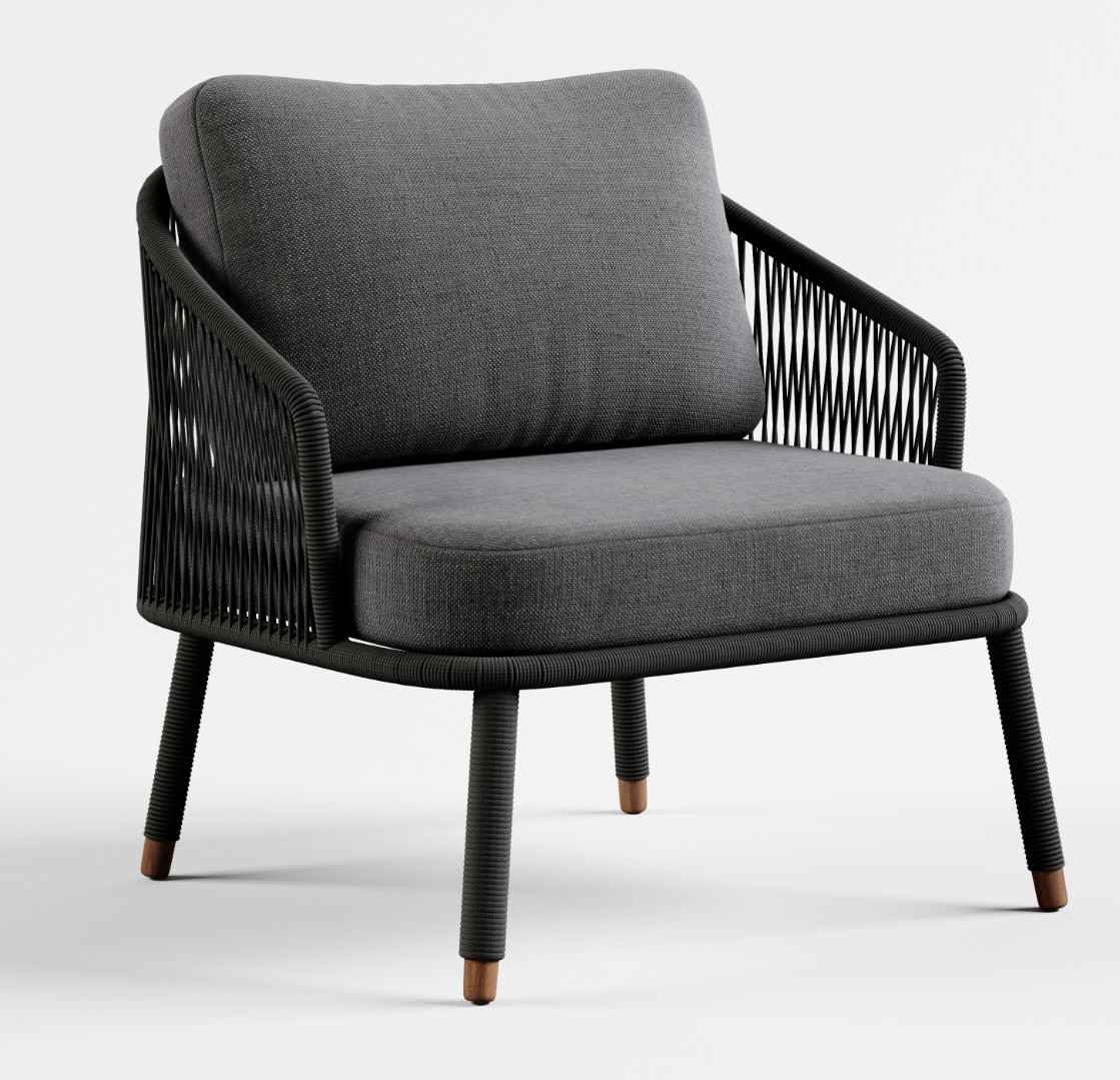 "Верона" кресло плетеное из роупа, каркас алюминий темно-серый (RAL7024) муар, роуп темно-серый круглый, ткань темно-серая 027