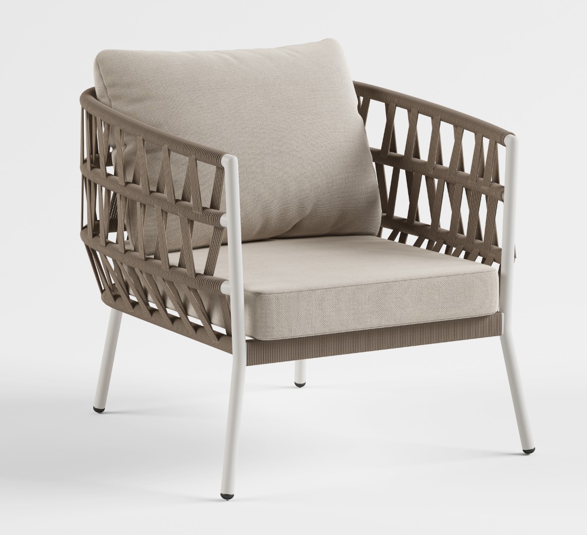 "Диего" кресло плетеное из роупа, каркас алюминий светло-серый (RAL7035) муар, роуп бирюзовый круглый, ткань светло-серая