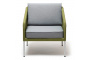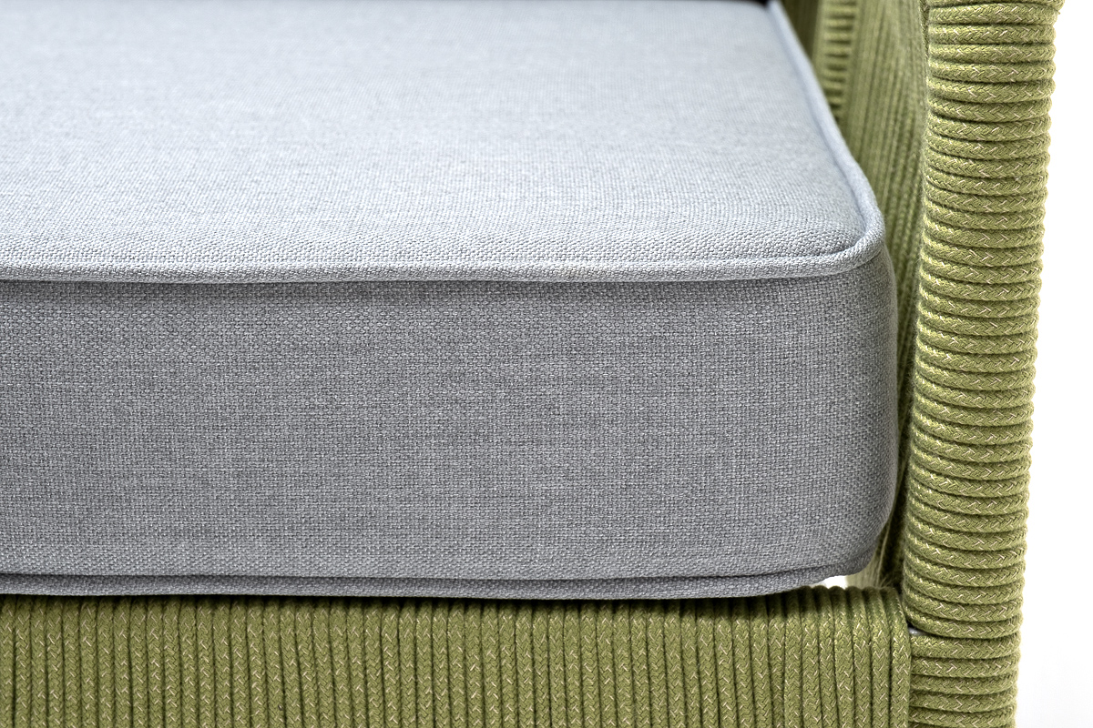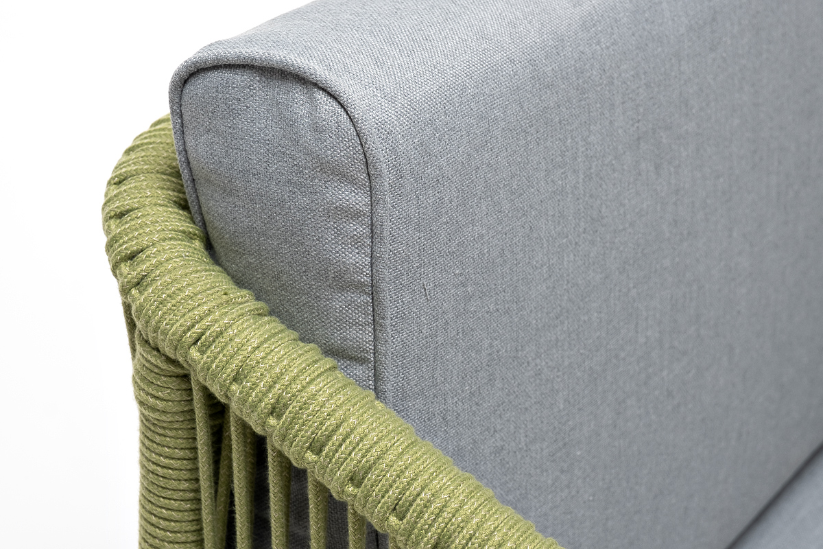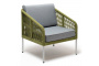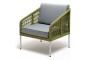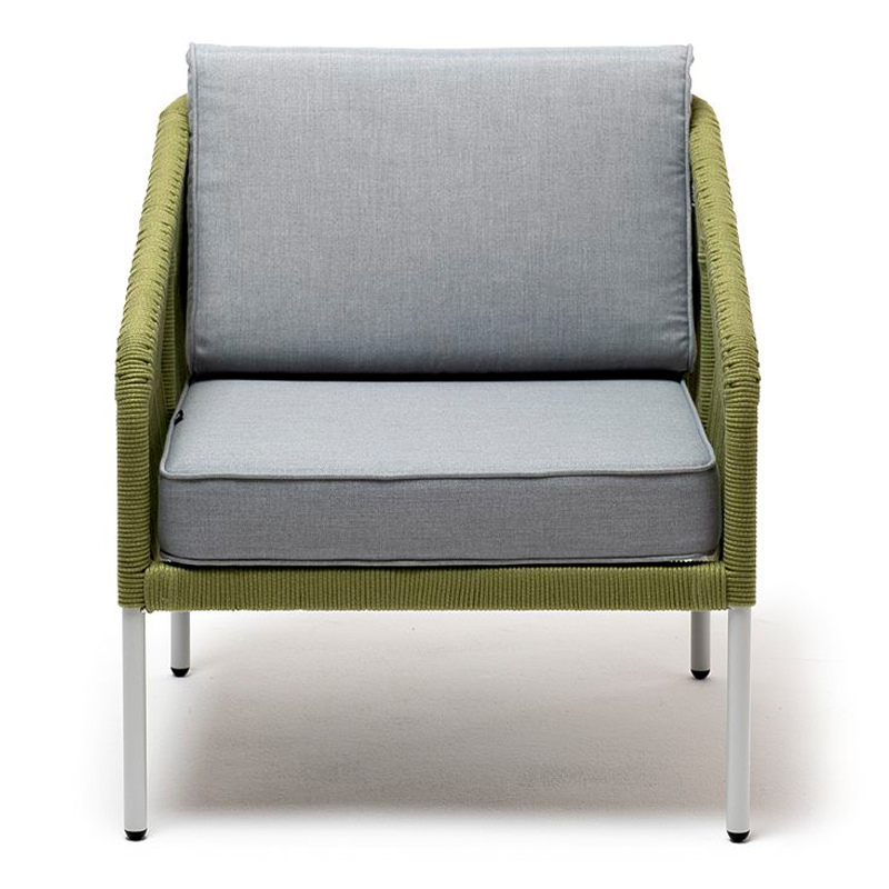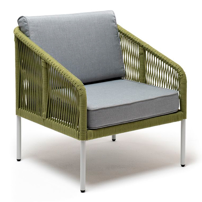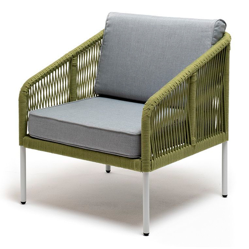 "Канны" кресло плетеное из роупа, каркас алюминий светло-серый (RAL7035) муар, роуп салатовый меланж круглый, ткань светло-серая