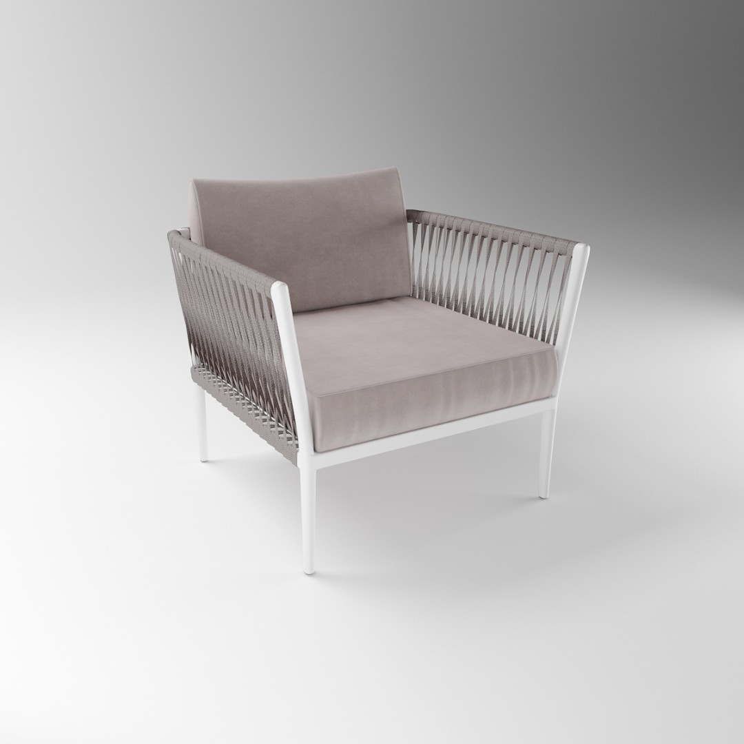"Касабланка" кресло плетеное из роупа, каркас алюминий белый муар, роуп бежевый 20мм, ткань бежевая 15052