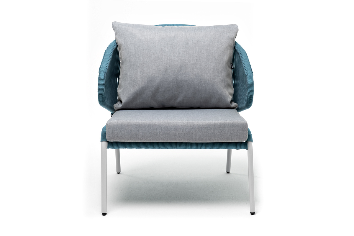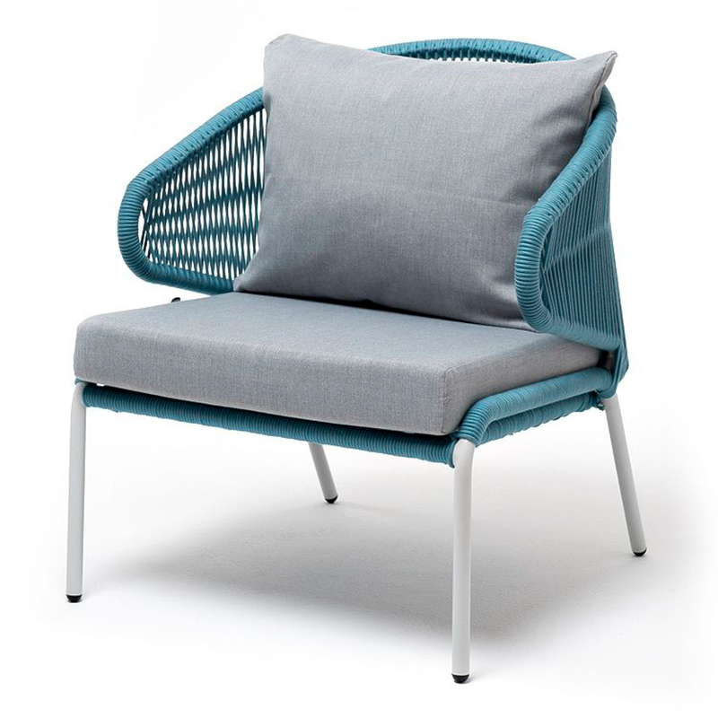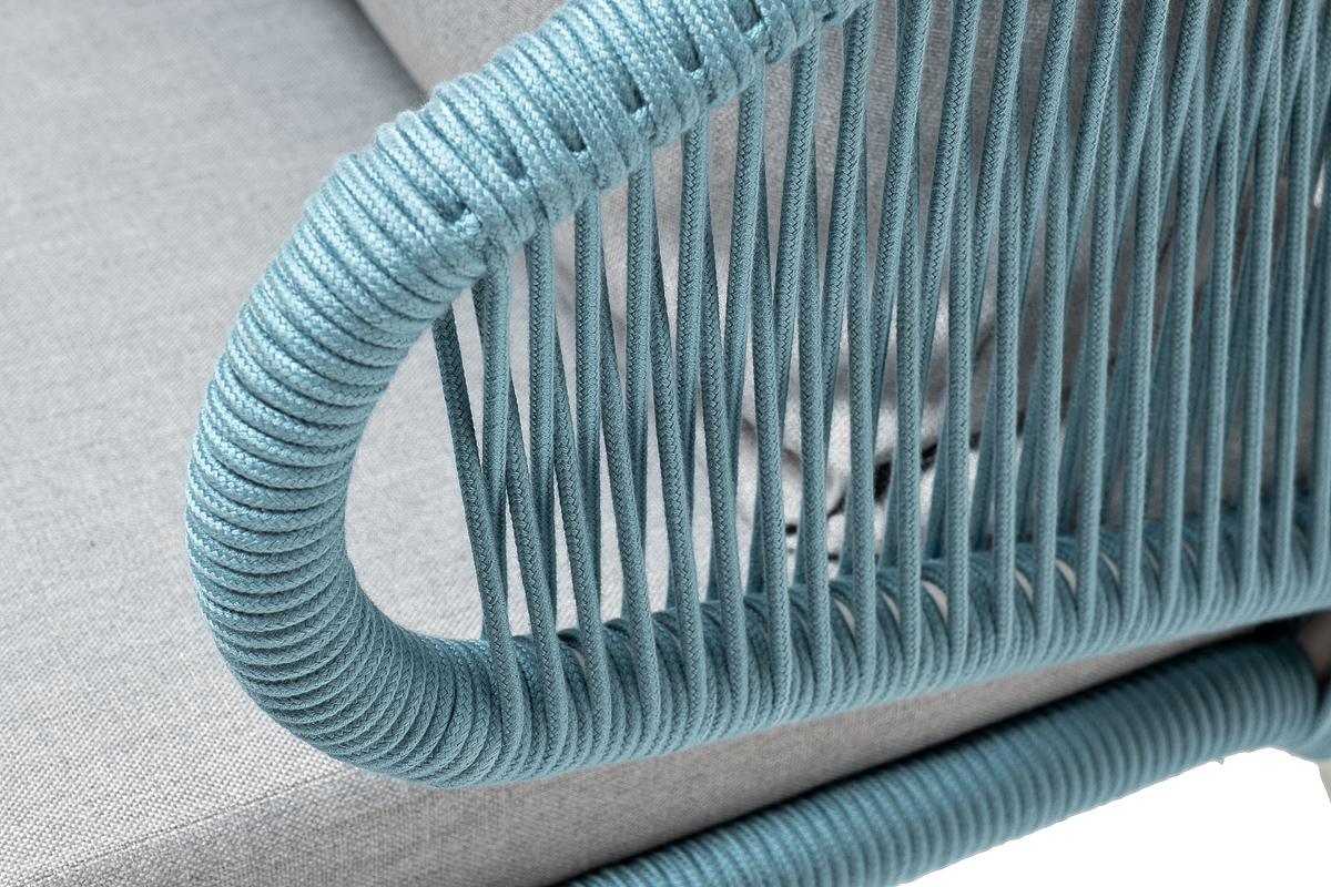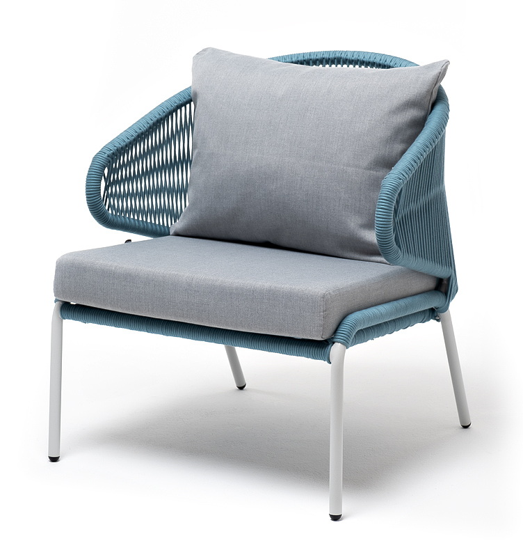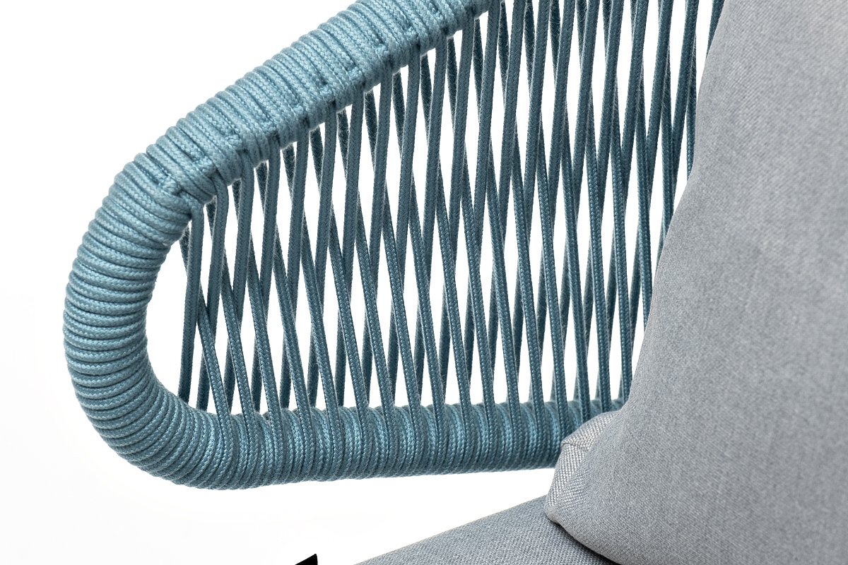 "Милан" кресло плетеное из роупа, каркас алюминий светло-серый (RAL7035) муар, роуп бирюзовый круглый, ткань светло-серая