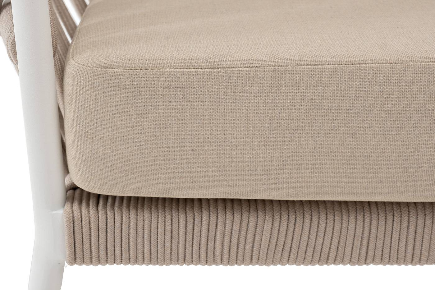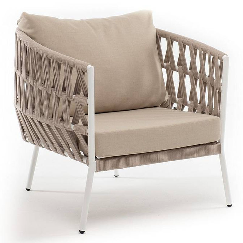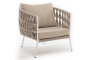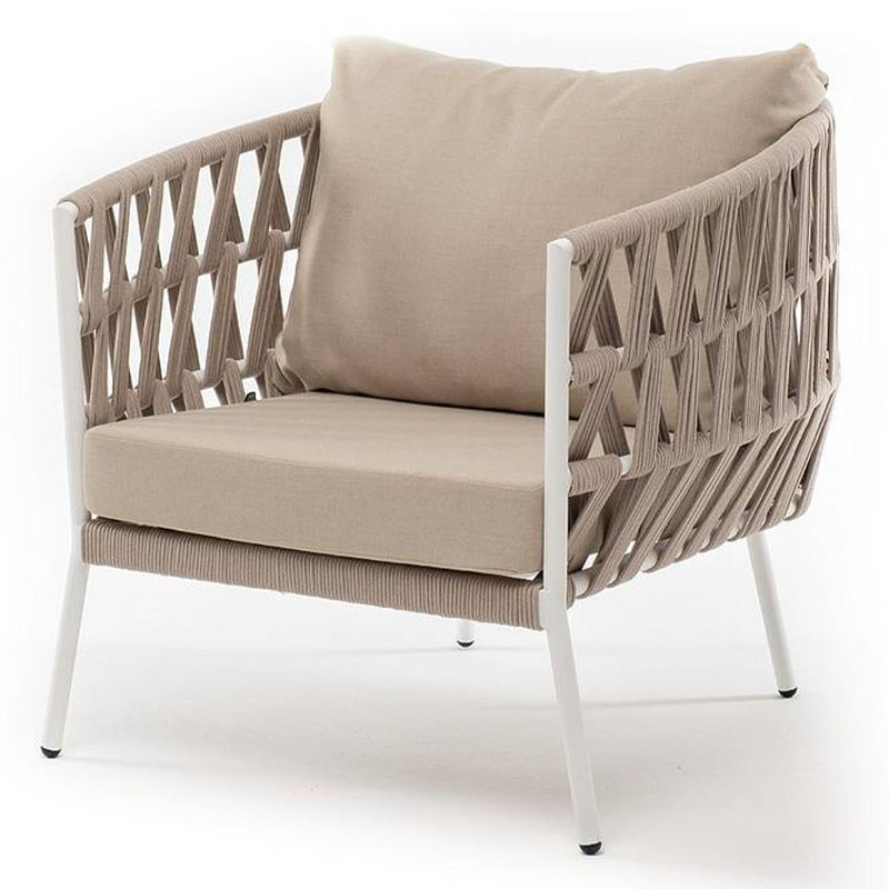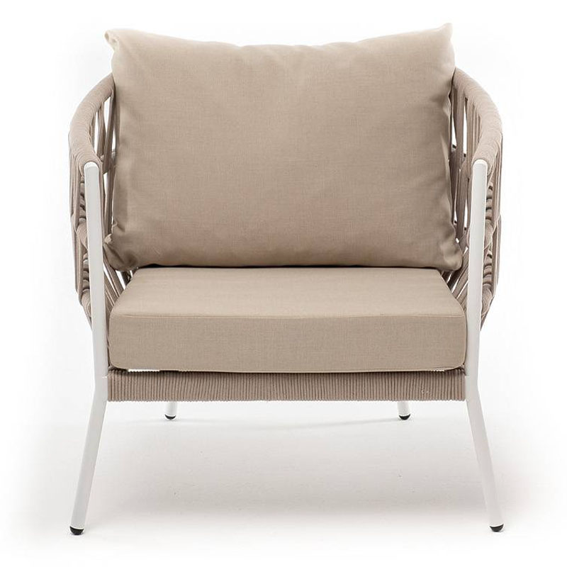 "Диего" кресло плетеное из роупа, каркас алюминий светло-серый (RAL7035) шагрень, роуп бежевый круглый, ткань бежевая 052